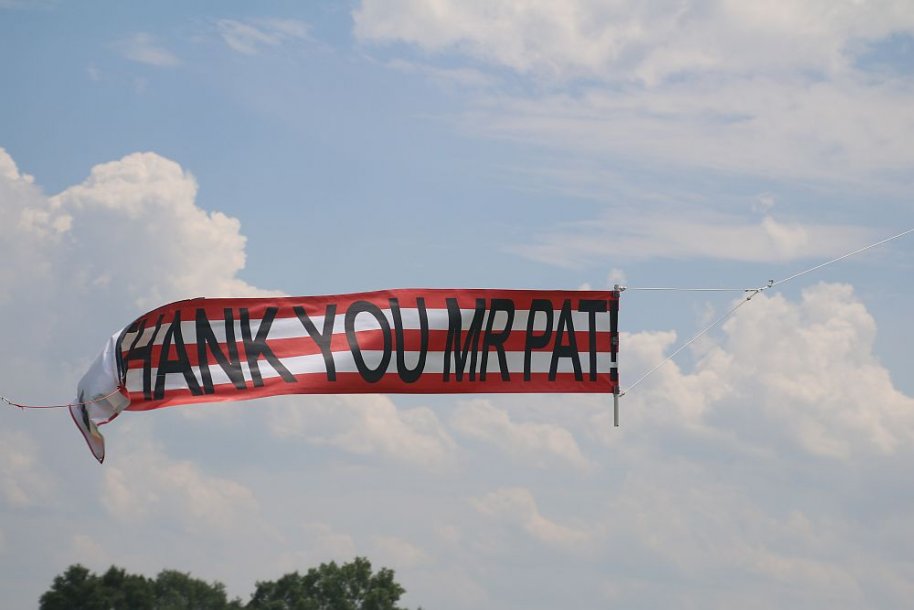 Here is @Bartman towing a banner thanking Mr. Pat for the awesomeness that is Joe Nall.