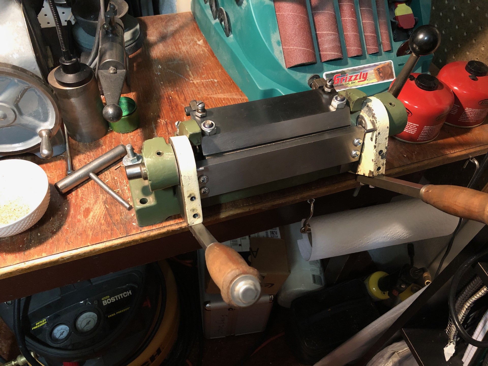 I’m getting there. There’s a welder and cutting torch rig out of the photo. I have a table saw and bandsaw to bring in eventually. I need a drill press, welding table, etc.