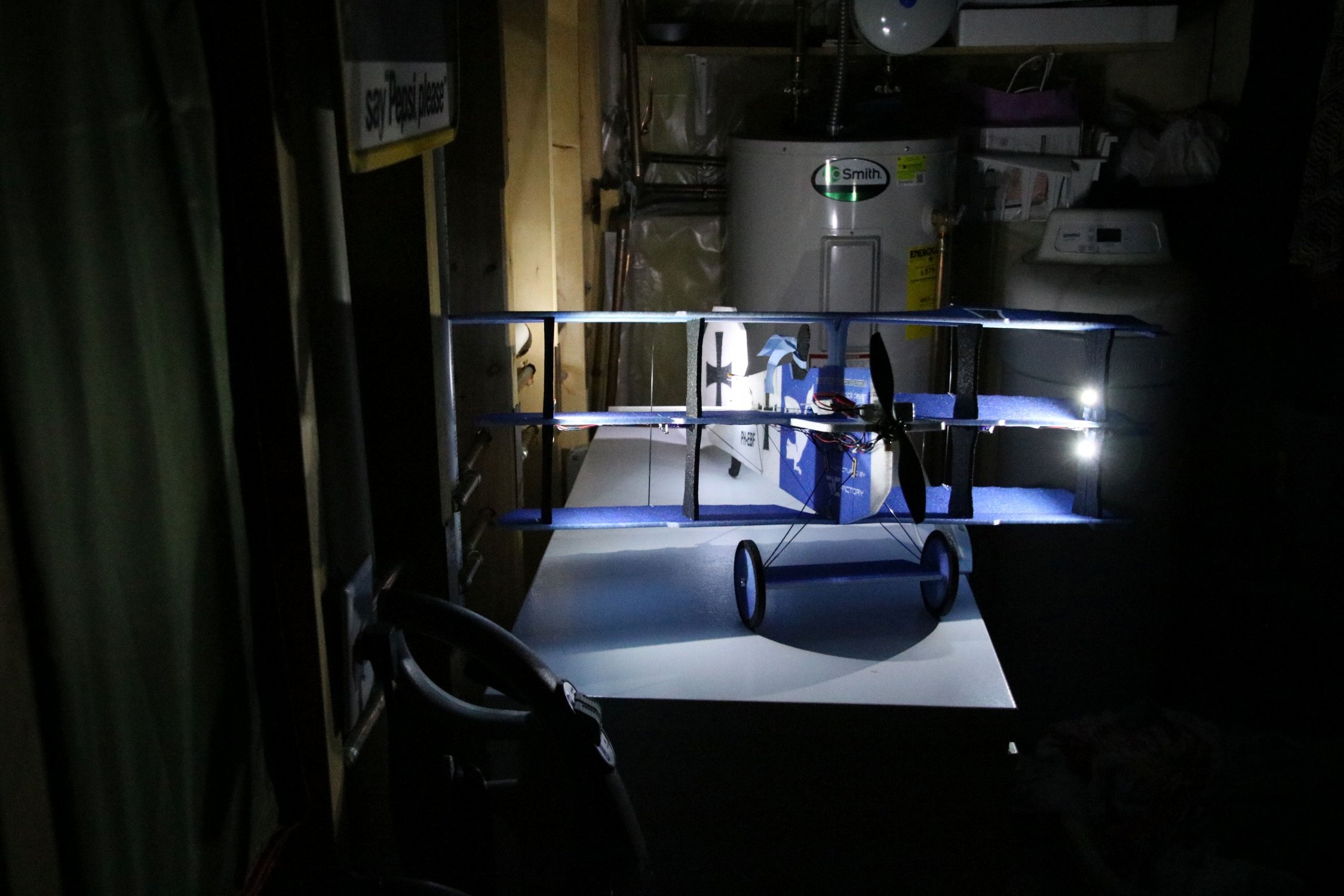 I received my light set today. Thanks Mike. I was trying to decide if I wanted to use them as is and put them on the middle wing, or break up the wing ones and put one on top and one on the bottom wing. I tested out the setup as is and decided it looked good. Installation is a breeze and these should provide plenty of light for night flying. The set comes with a Y harness, so I used one of the ends and soldered it inline with my battery connector. That way I can unplug the lights if I want. The utility room was the only place I could find that is completely dark, so that is where I took the pics.View attachment 85840 View attachment 85841 View attachment 85842 View attachment 85843 View attachment 85844 View attachment 85845 View attachment 85846 View attachment 85847