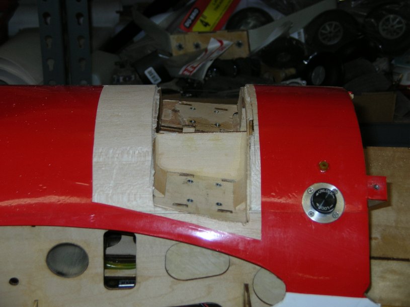 I pieced the broken ply together in the the fuse as close to original as possible. First I cut access holes in the sheeting to get to it and later made a hatch over the gears. Since I don't use the tunnel I put a 1/4 in ply cap over the broken ply all the way across to the other side. (1 piece.) Then I put 1/8 light ply caps on the front and the back side of the channel that I cut. In effect I had a U beam facing down on the bottom of the plane. Then I sheeted it and made 2 hatches on each side so I can get at it easier in the future. You never know when I'll stall it again. LOL.