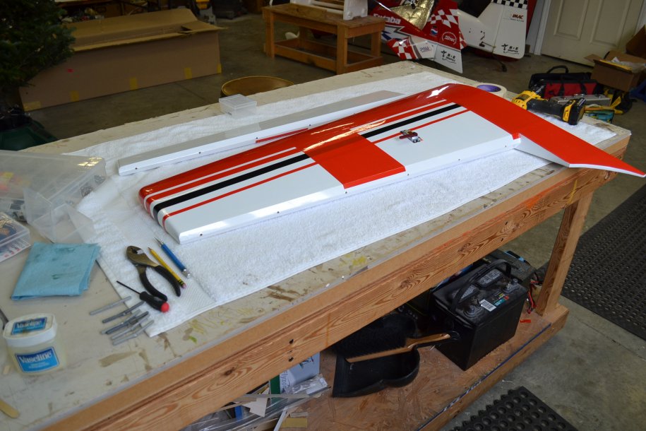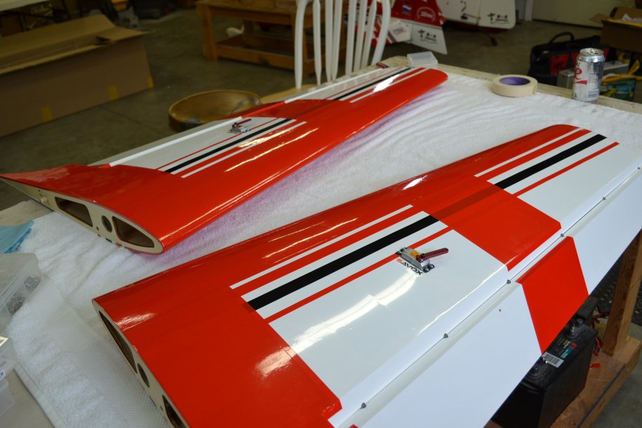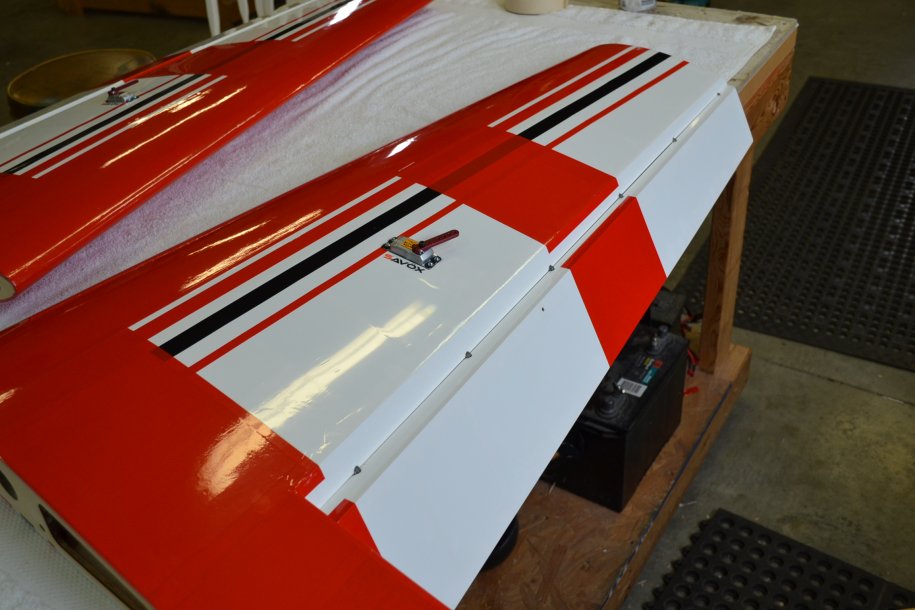 I have the second wing hinges epoxied into the wing only. While that is drying I picked out the tape from the first wing. These hinges are turning out to be the best I've ever done. I think its the routine partially, but mostly because I'm taking my time.