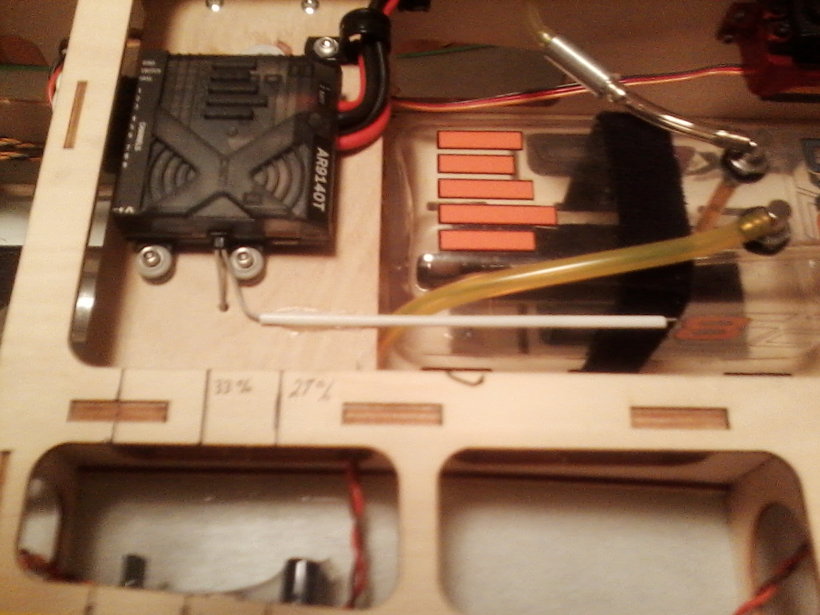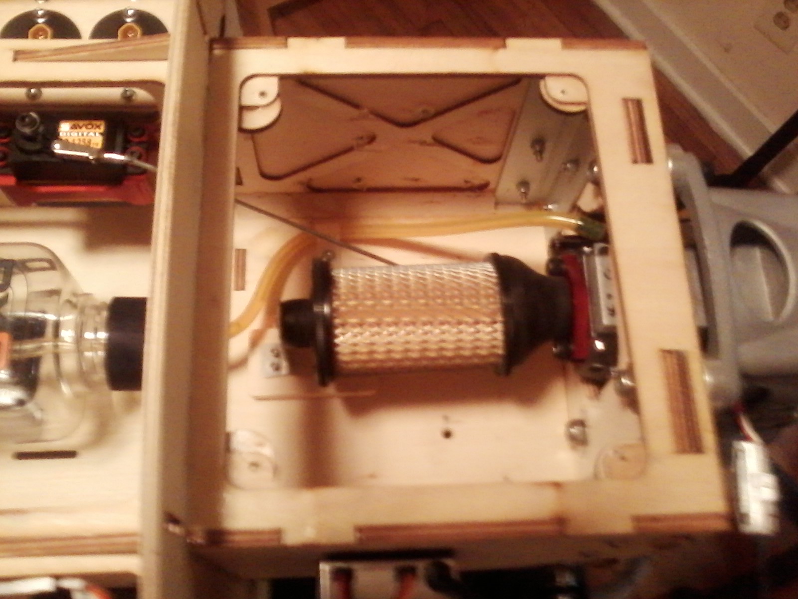 I did away with the "exhaust chest" on the airframe and will be using a simple 22mm Teflon tube extension to route exhaust away from the bottom of the plane. It was noisy and messy. I also took the time to re-route the main Rx antennae's for better reception. My flight logs where consistently showing 200 to 250 data packets being lost on the main RX. The three remotes would only show 10 to 25 packets being lost. According to Spectrum anything under 100 data packets being lost is acceptable. Just need to bolt on the header and install the batteries back to the side of the motor box. Then It will be time to drill and fit the Falcon 24x9 CF prop and fill the tank back up :).