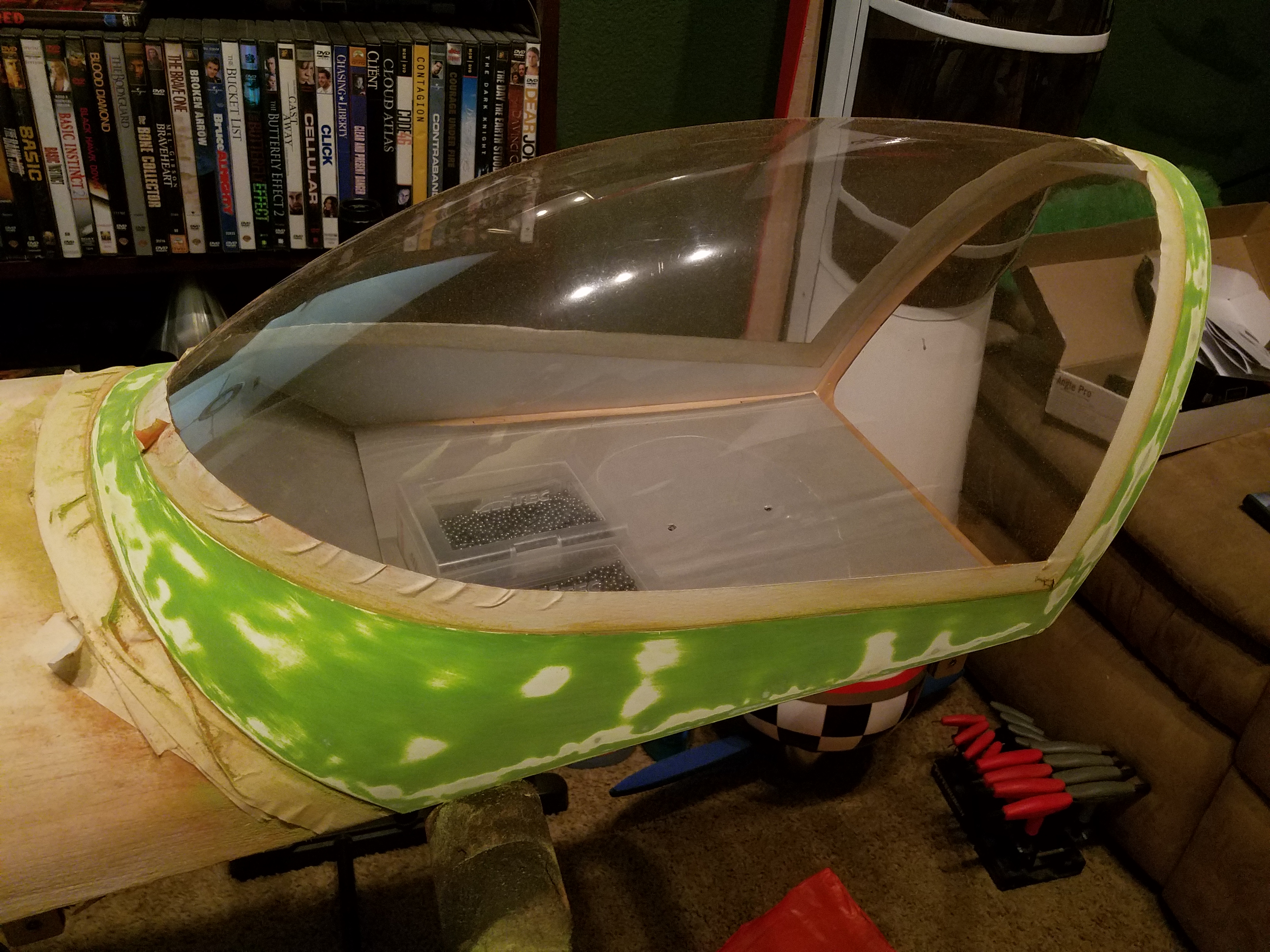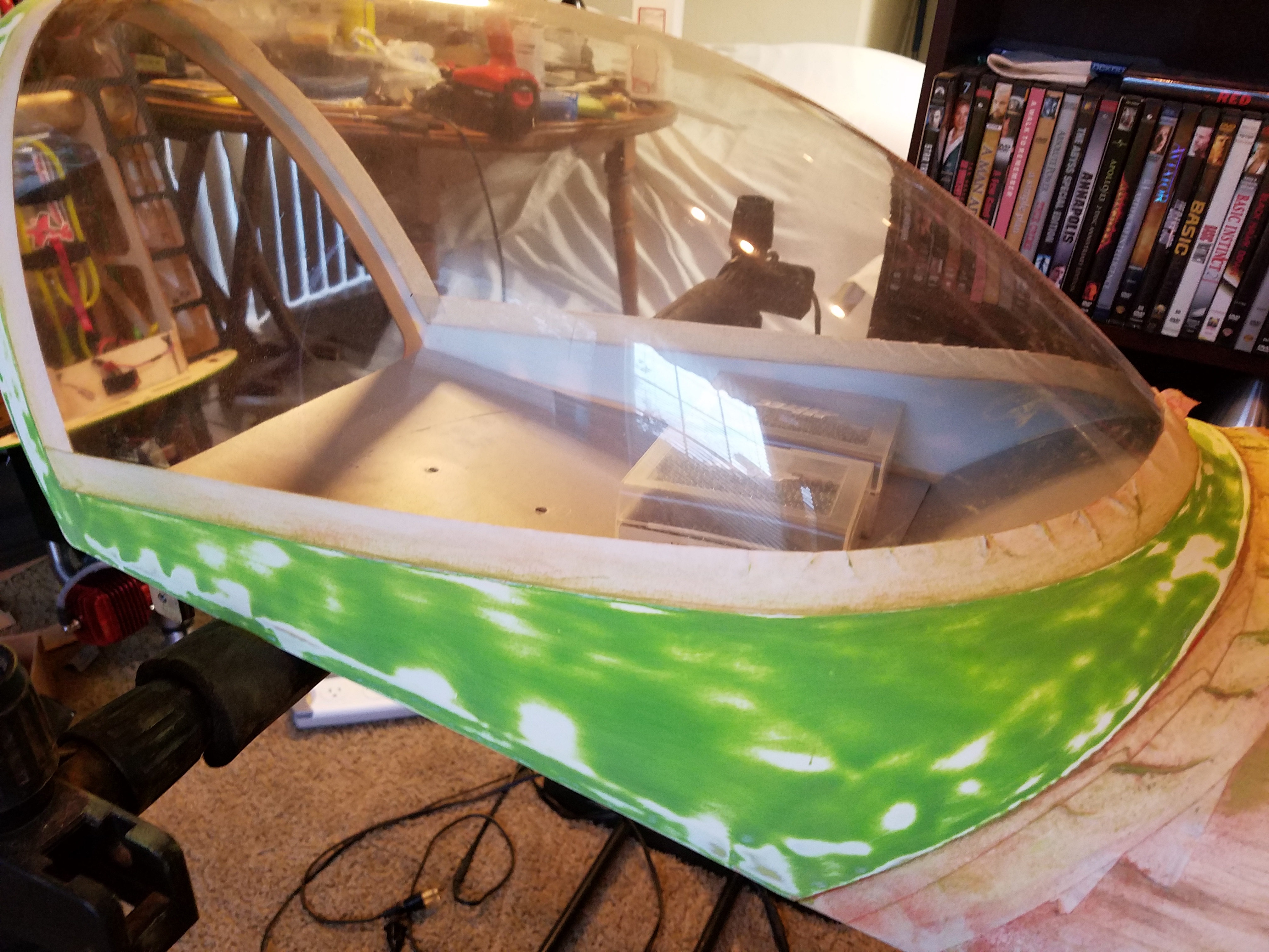 So would it be safe to assume that @Xpress hit the nail on the head? No red, so repainted a green? This is actually very helpful. Now I know how to proceed with said canopy. I am going to shoot it with primer. (Once final sanding is done) if the primer stays down with no issues, I will then paint it and be done with it. Lol