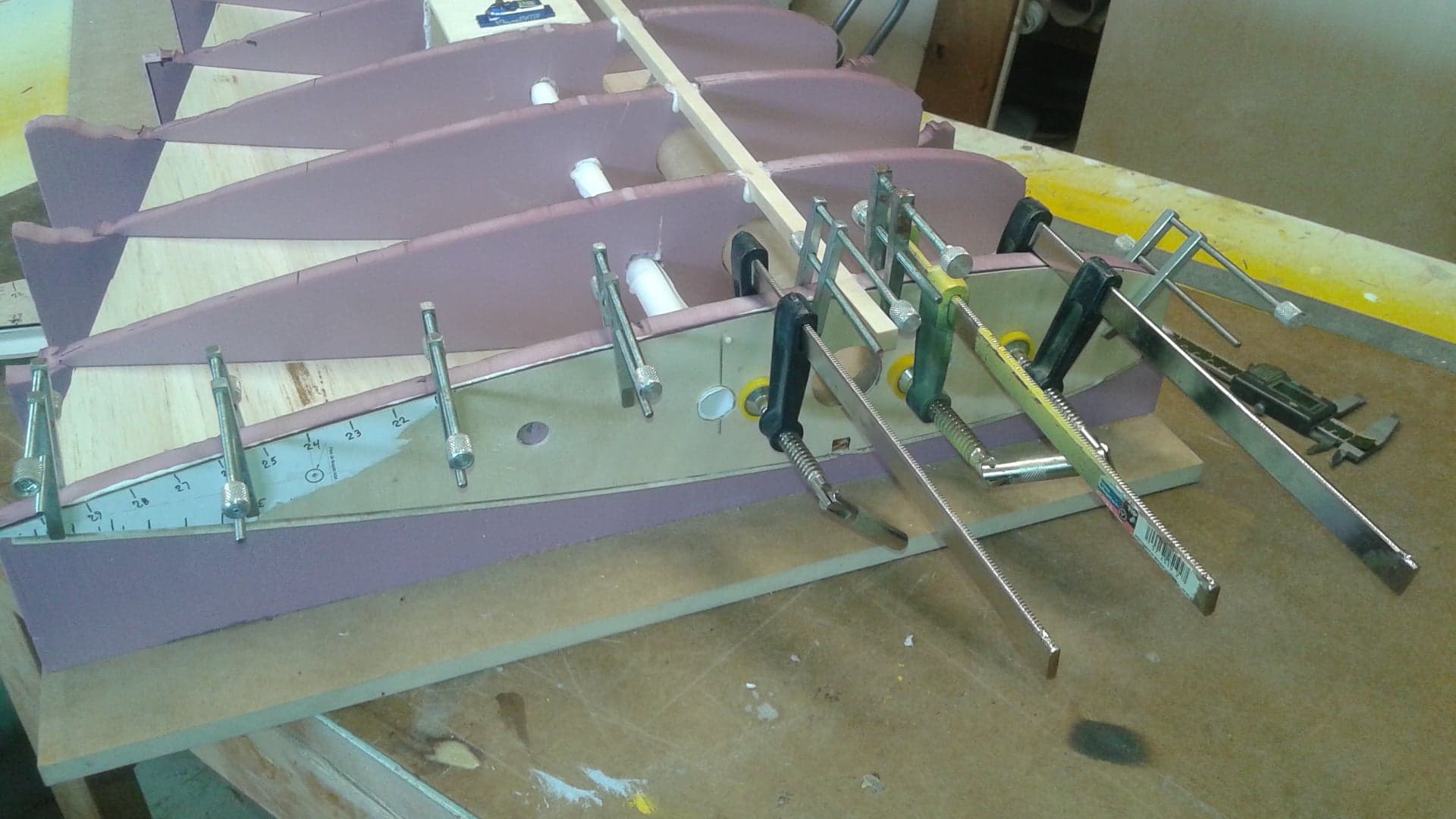 today added more shear webs, and while the glue did its thing , worked on the lathe to make location aluminum parts for the wing, which will also serve as the wing hold down in the fuse