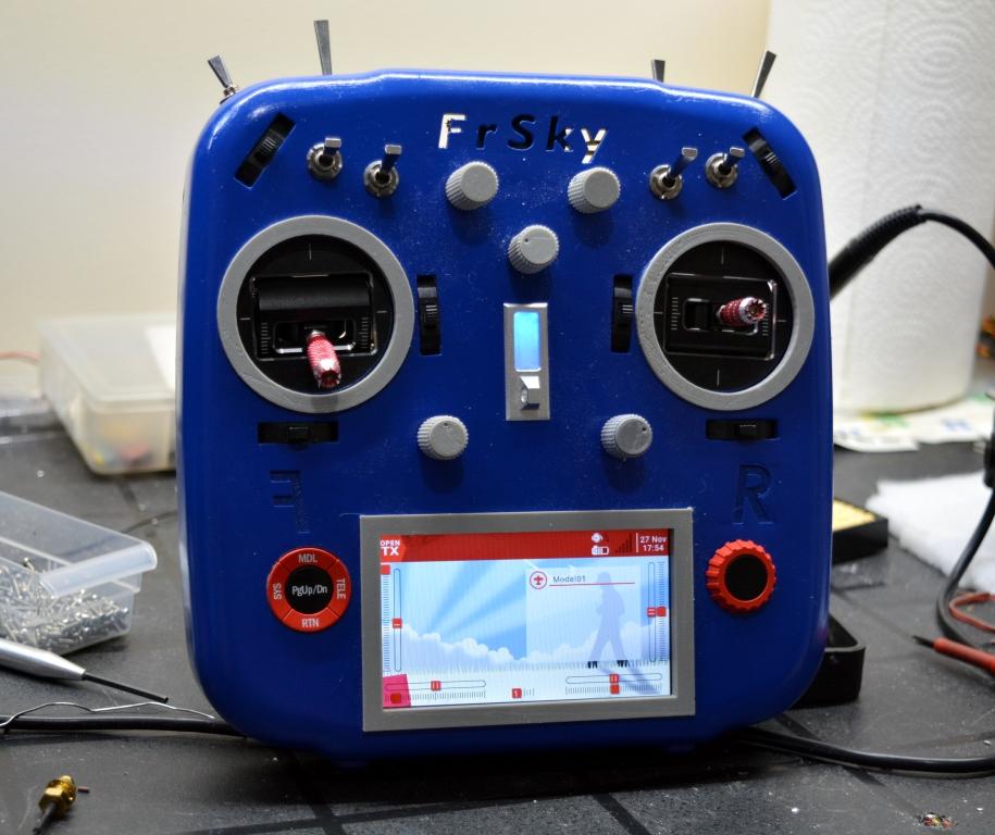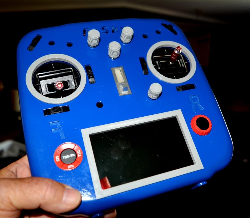 Here is one of the reason the Laser is not going as fast as I would like , I designed a new more ergonomic FrSky X10S casing, 3D printed and now in final stage of assembling all electronics, Had the power on , and happy to report there was no white smoke LOL but still more soldering for longer needed wires but its all good