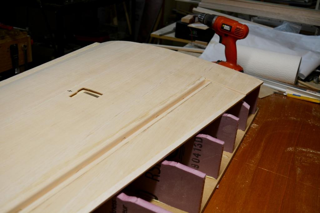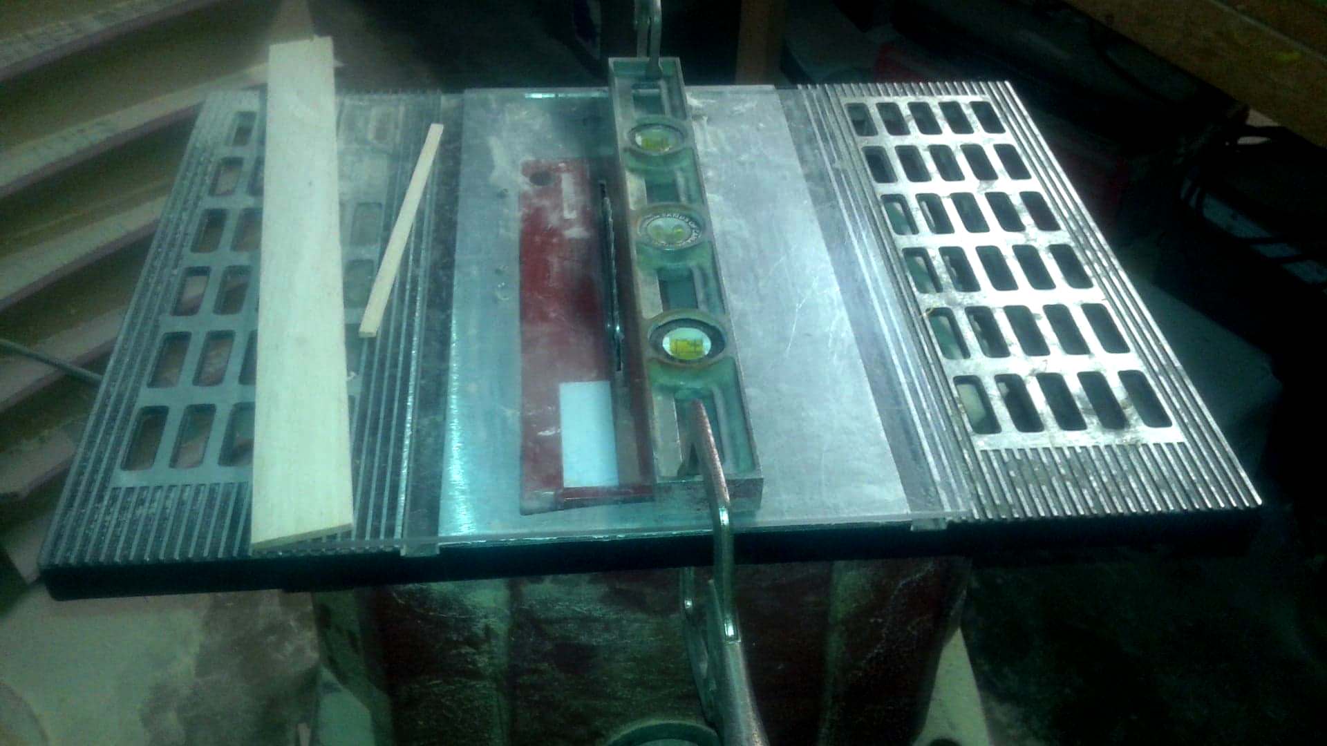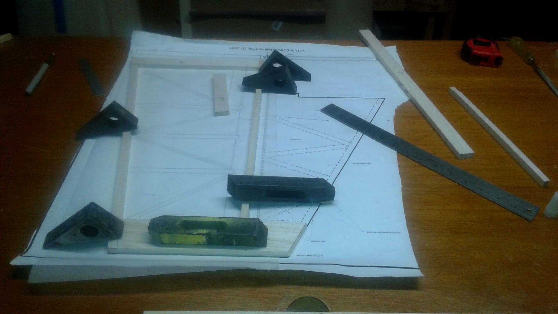 rudder assembled more work to be done, you can see my faithful inexpensive table saw I use, and you can see what I did for precision, the first thing a large piece of plexiglass to have a smooth surface , then I'm using an old aluminum level as a fence , it works