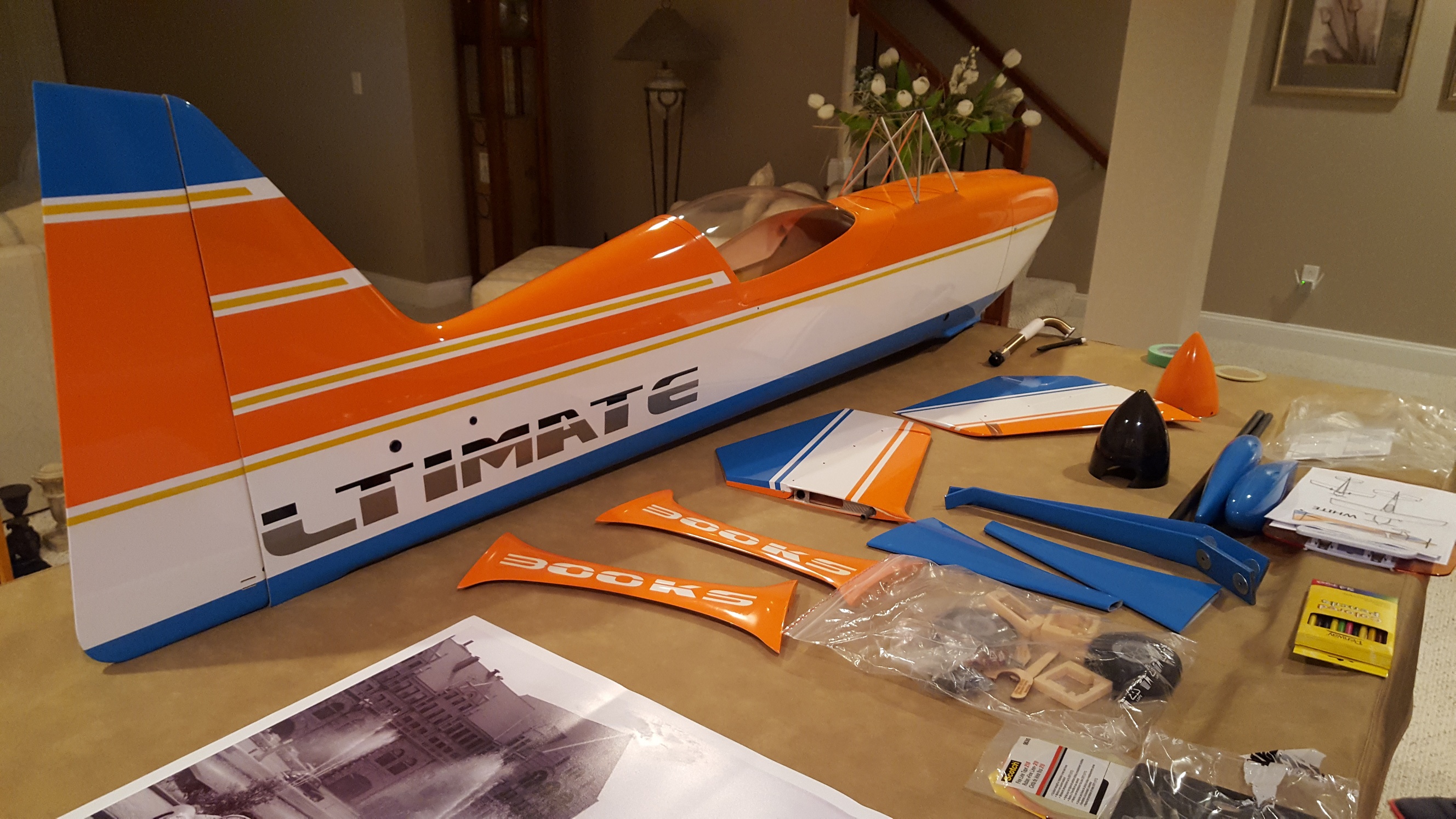 Tony stopped by my work today and said he's narrowing a scheme choice down. He's going to bring me the fuse, rudder and cowl tonight so I can get started putting the rudder post in and split the cowl.