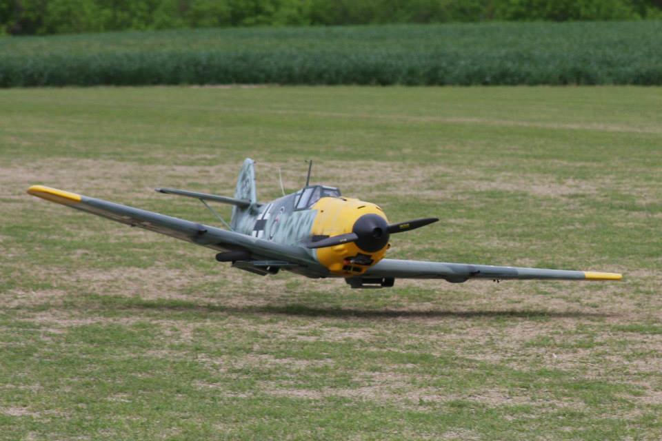 Nice shot!How about this for getting down low, this was actually taken at a scale fun-fly in Charlotte when the electric retracts failed to come down on my 1/4 scale 109E-4. You can see the R/H main gear stuck just short of the wheel well after the motor burned out. It was a beautiful gear-up landing with the prop stopped perfect!View attachment 87257