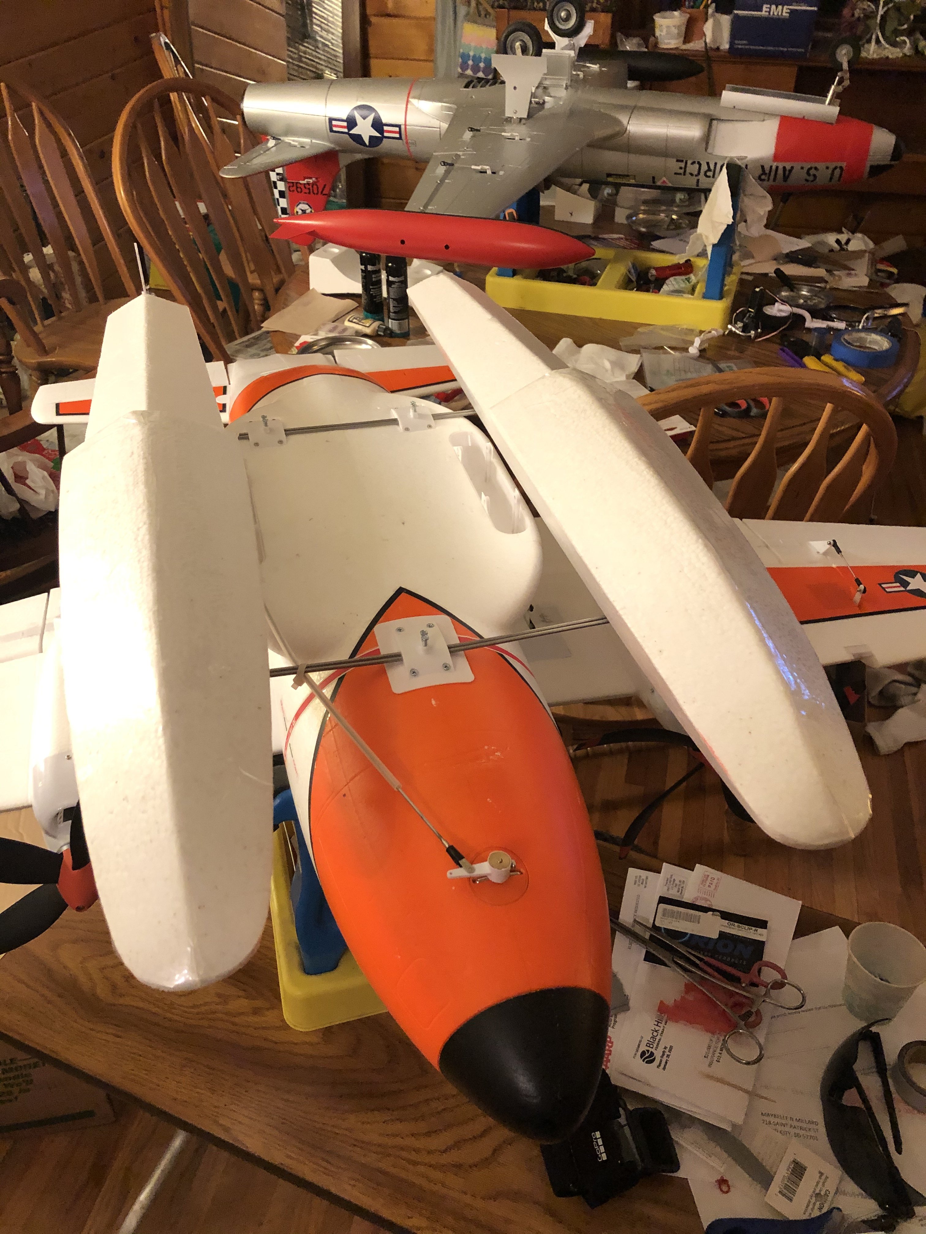 Previous photo's taken yesterday After flying. These two taken today after flying this morning I got in a big hurry, and left my Wallet phone and Go-Pro Camera's at home. Didn't fly long anyway temperature only 20 degrees and a light 8 mph wind I my fingers got cold very fast. LOL!!!! No one else wanted to meet me to fly in the snow and cold. Like AKnick states "It's tougher in Alaska". Well you can say the same thing about Western SD LOL!!!! but not as long cold spells.I have many hours on this Plane. I never take the floats off. This one is my go to snow and water OP's plane, Fly it off snow in the winter and the lakes in the Spring, Summer, and Fall
