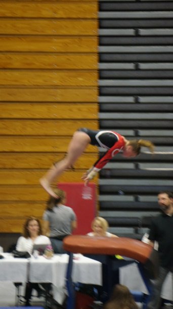 Three of her warm ups at her state gymnastics meet.