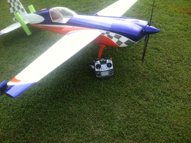 Awesome plane. My friend up here has one just like it. He has no time to maiden it so it looks as though I will get to do the honors. Oh, I know what you all are thinking..... I just keep him for a friend so I can fly his planes right? "Gimmie the sticks, I'll fly it". LOL...Well after a very crappy Wed I got a new 14sg last night and got back on the horse today, I brought my plane home in the same number of pieces even got her down and beat on her a little.