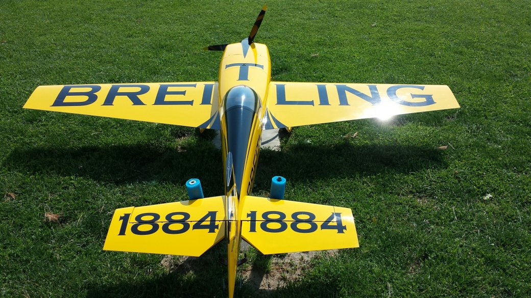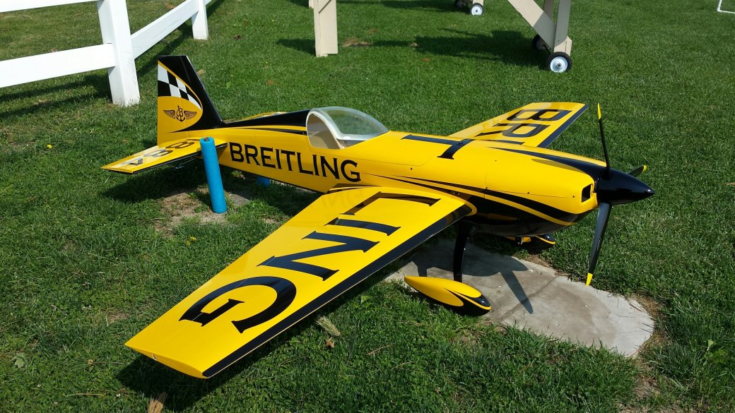 I had an interesting day at the field today. First off the weather man needs to be shot. 5 to 10mph my die'n A@@! My flying buddy Tony wanted to maiden his new Composite ARF 35% Extra 330SC. He hasn't flown yet this year, so I got elected to do it. What a gorgeous airplane! DA 120, Pro Flows and a beautiful slick Breitling scheme.