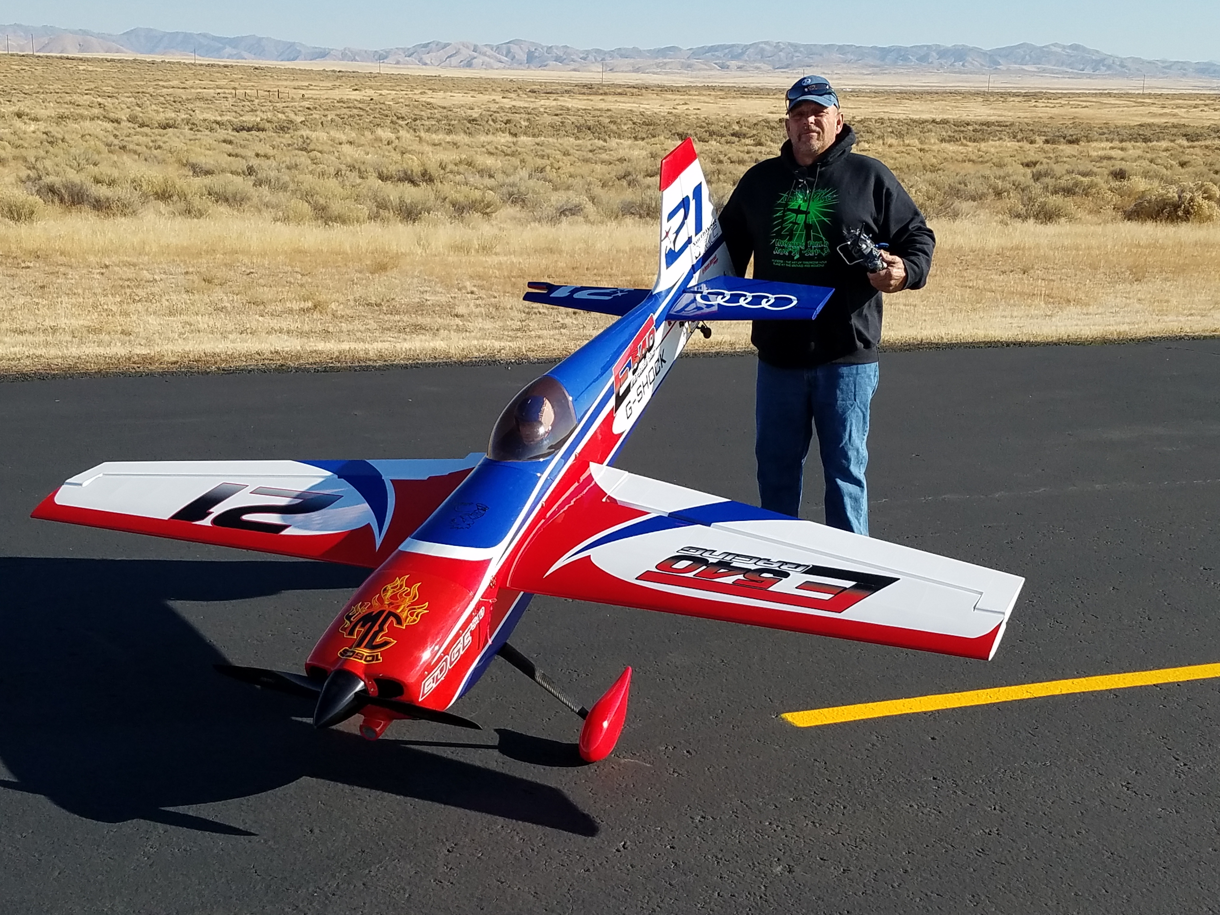 I still had a really great time though. My son has asked me if I wanted to fly his dle 222 powered paunch. Um duh, does it snow in the North Pole? What an incredible flying plane he has. He has done an awesome job with it.