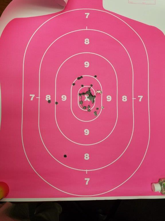 I beg to differ on the big revolvers. Shot this with a 454 Casull(Raging Judge) and a 45-70 (magnum research BFR 45-70). The low shot on the left was a trigger yank on my part. The two to the middle left were part of 5 one handed shots with the BFR 45-70.