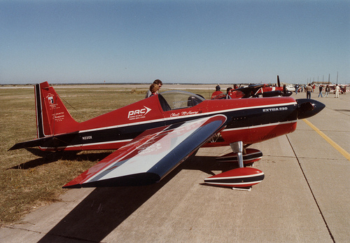 Pompano Air CenterThe model in the photo was of Clink McHenry's Extra 230. Originally the black was supposed to be dark blue, but the friend I painted it for thought the basic colors of red, black and white looked better together, and I agree.