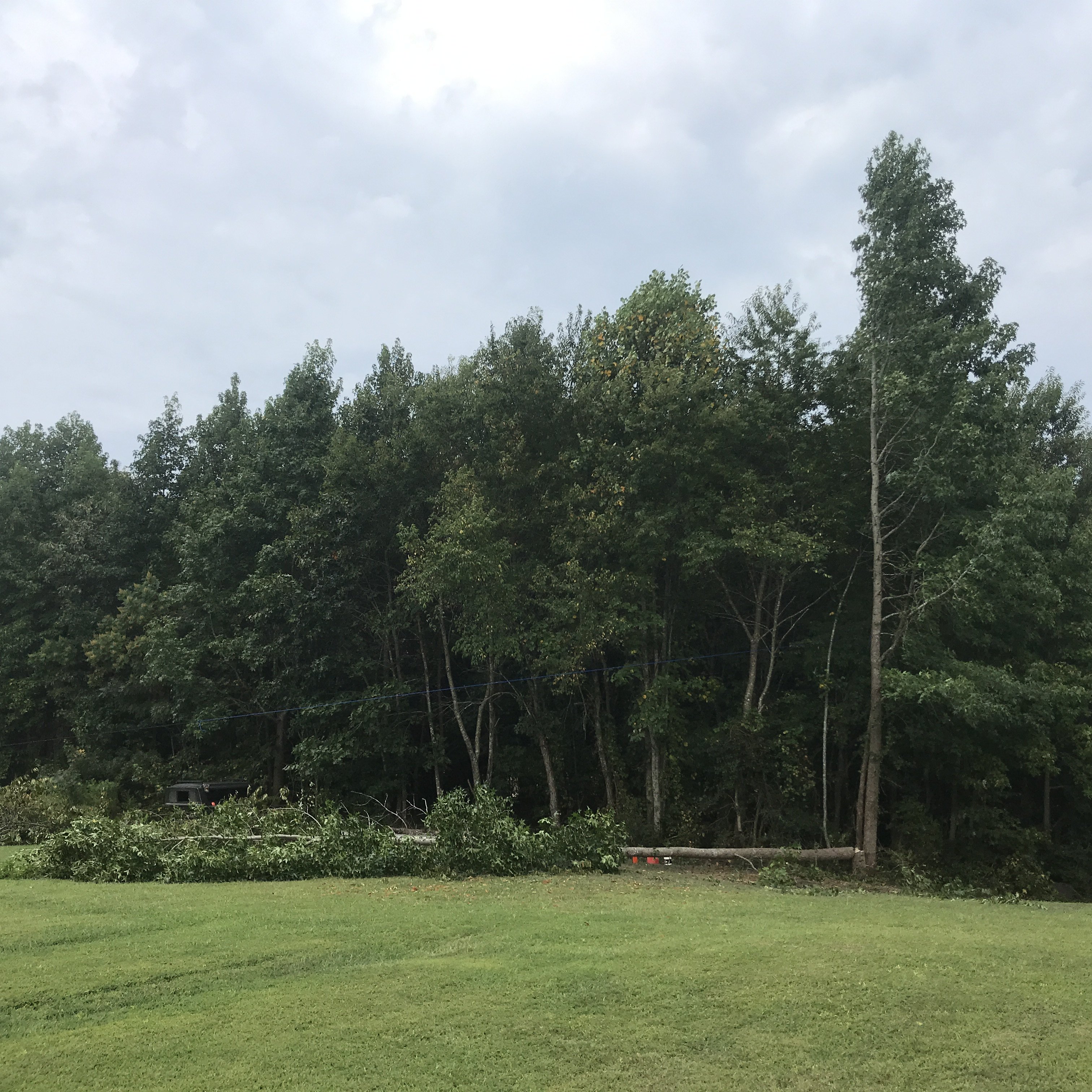 Second half not so much. Now all of these I have had a rope tied too using my truck to keep tension to go the way I want them to go. This one started going the right way as it should have landed on top of the other one. But then it started to twist and went the wrong way. Let’s just say I stepped it off and the tree was 56’ tall and my power pole is 58’ from the base of the tree. Got lucky there