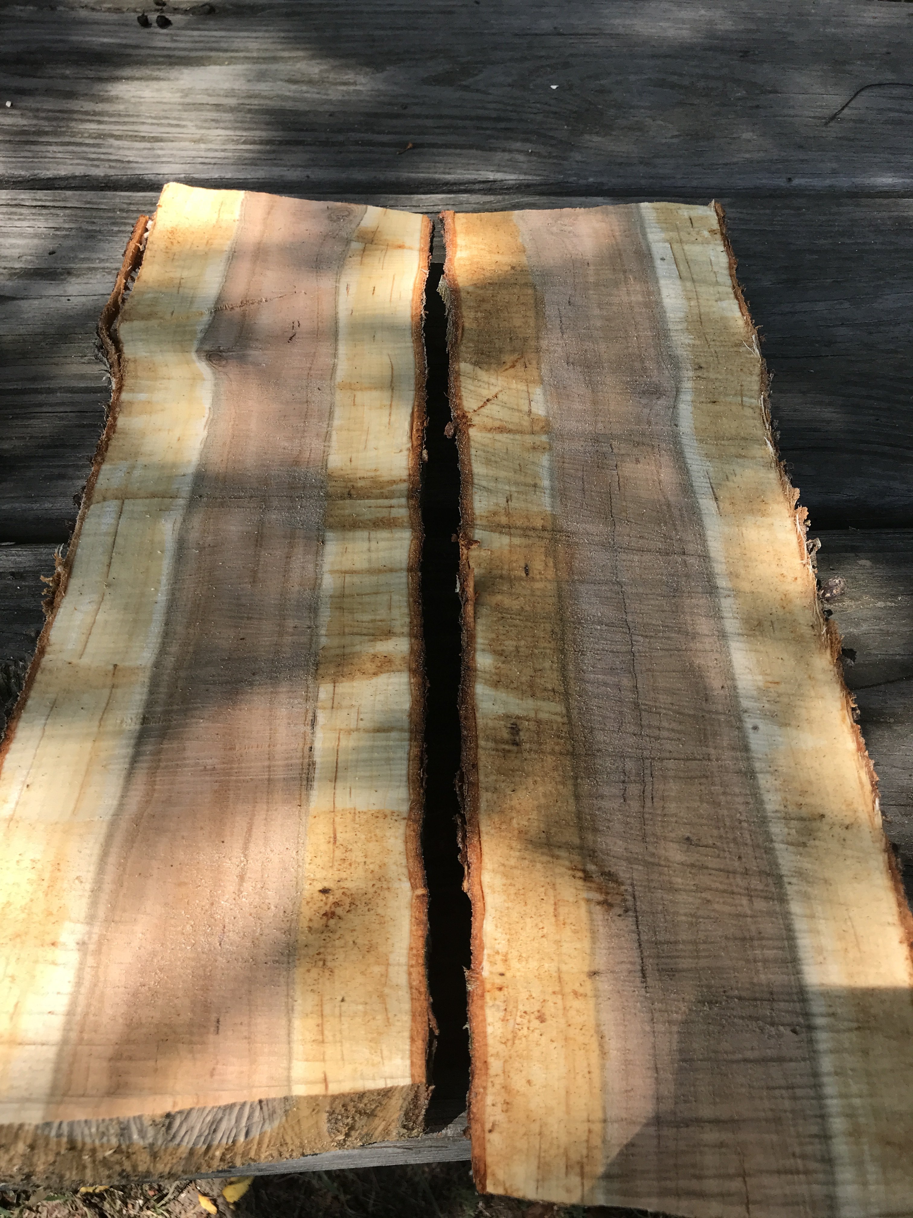 This is one of the pieces of black cherry that I just cut down the middle to see what I had. Can’t wait to have it all milled up and be able to make something pretty with it. Haven’t cut any of the gum up but just looking at the end grain I think it’s just going to be a nice pretty white wood all the way through.