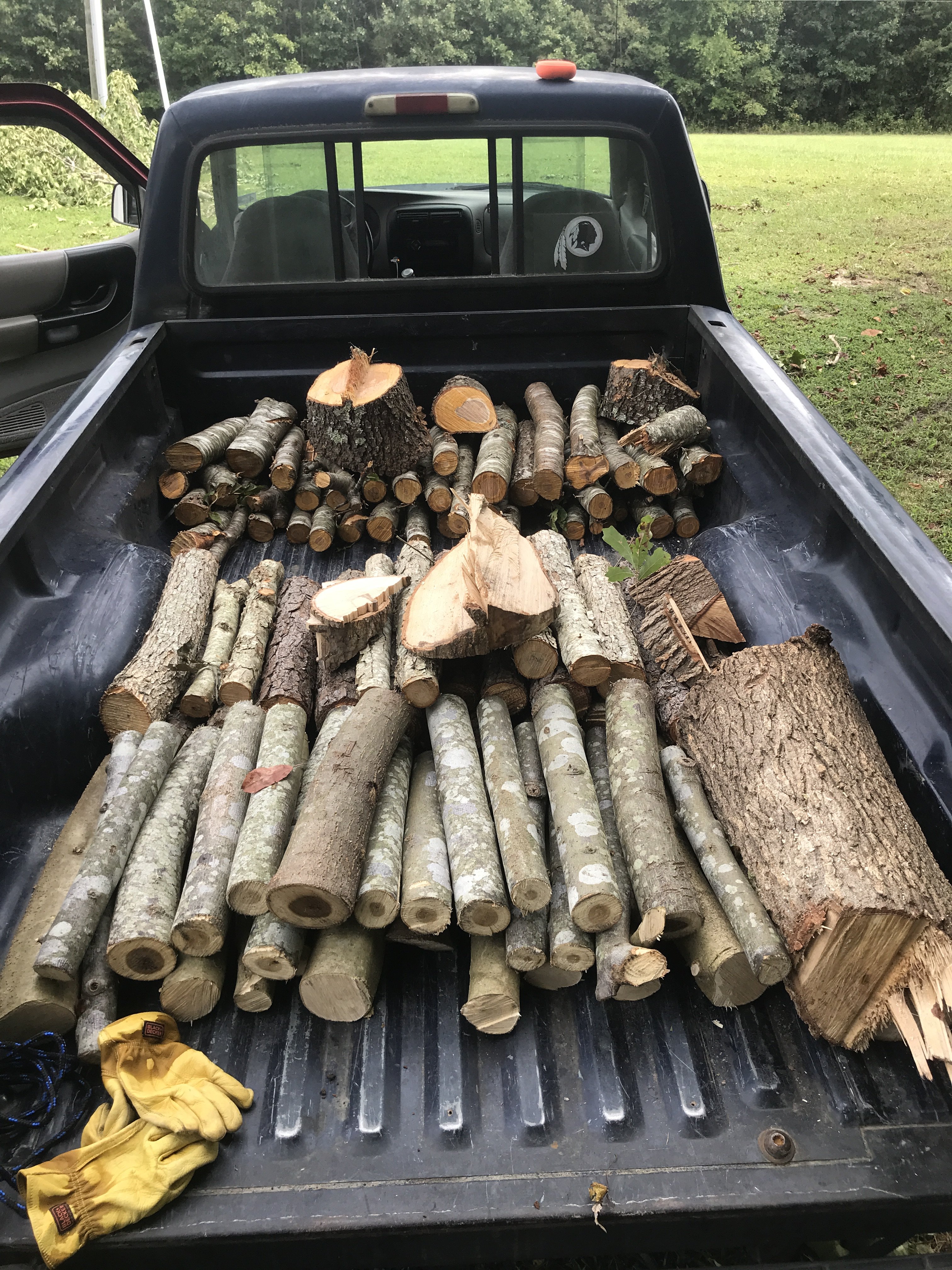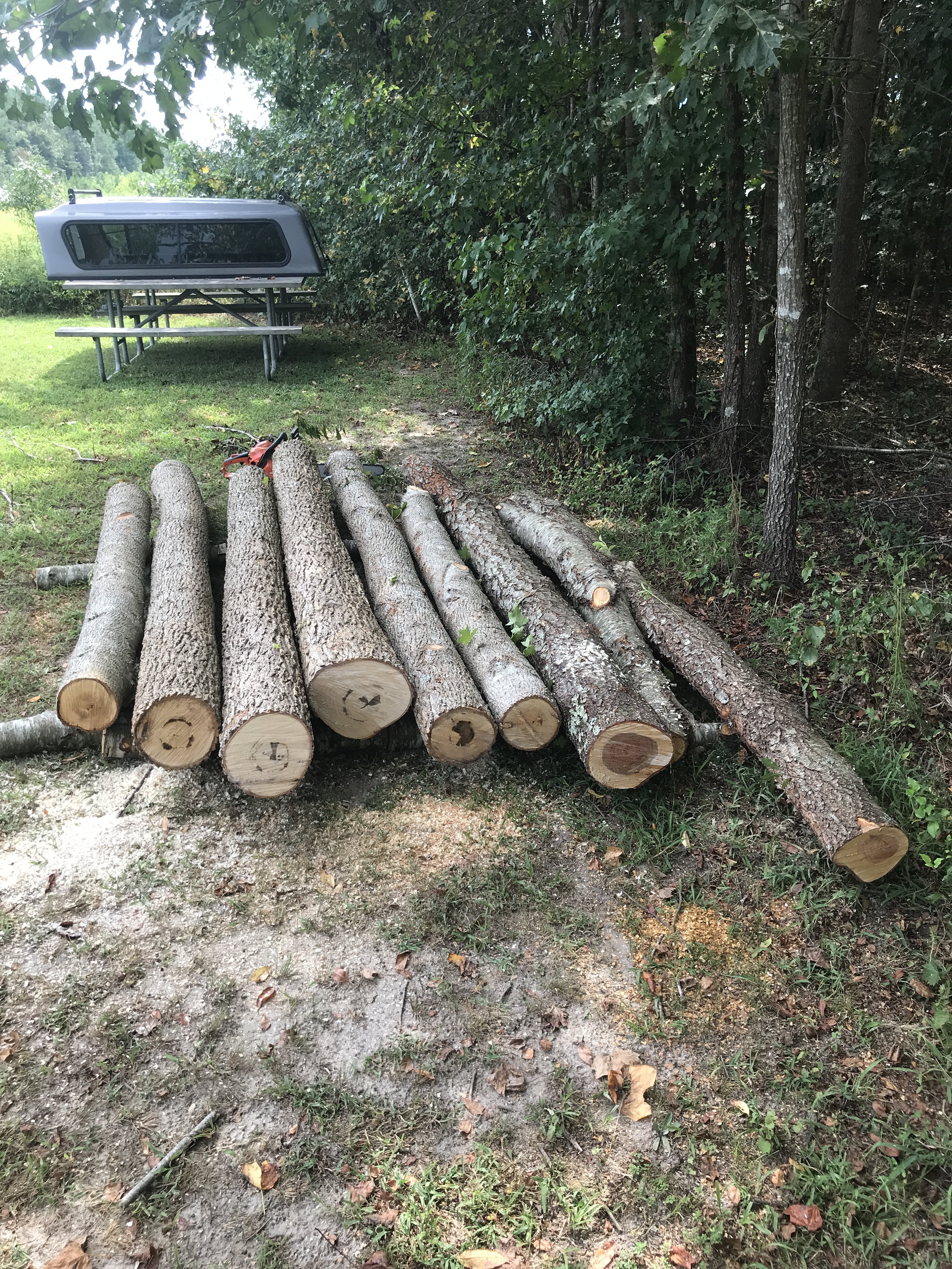 Now of all the trees I have 9 logs now that are roughly 9’ long and 8-10” in diameter that will go to the saw mill to be turned into lumber to use in my shop. The rest got cut up for firewood. Hauled all the sweetgum to my wife’s uncle for him go use. All the black cherry I’m keeping for myself to dry out and actually use in my smoker.