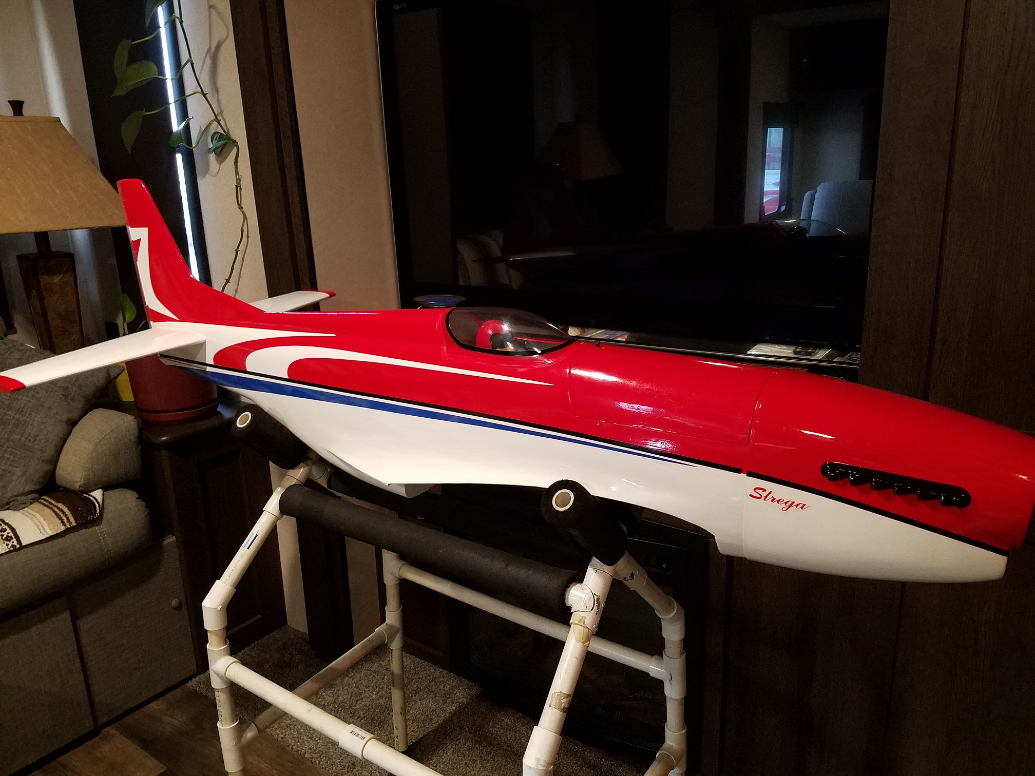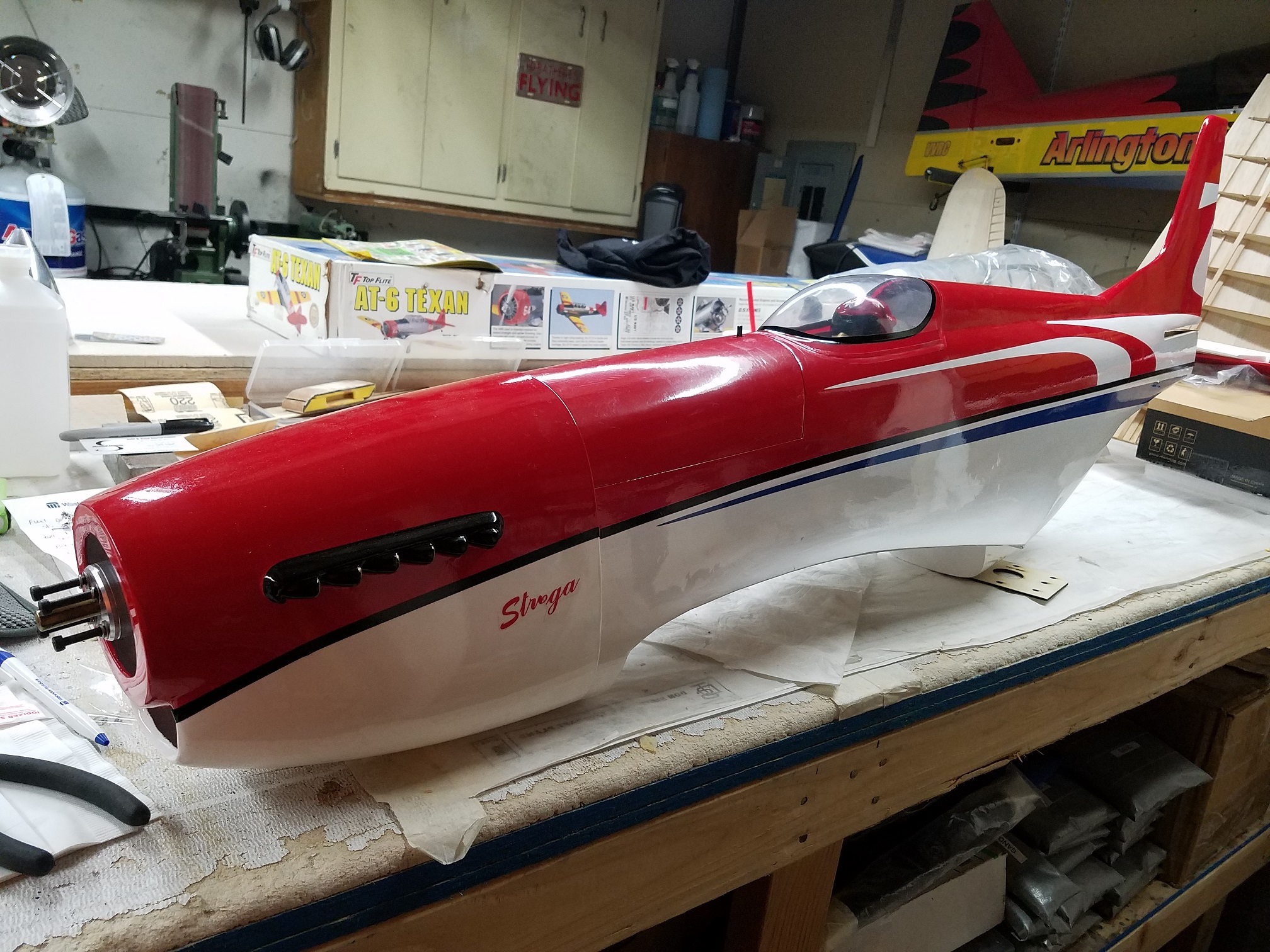 The 35RA fits quite nicely inside the cowl of the Strega. With ample room on all sides and the cowl will allow for great airflow over the engine. I may have to open a small relief hole in the bottom of the cowl to keep the top fins on the cylinder from rubbing a hole in it...but hey, better than a huge gaping hole. The sparky sparky may require a little bit of a hole also...but not much.