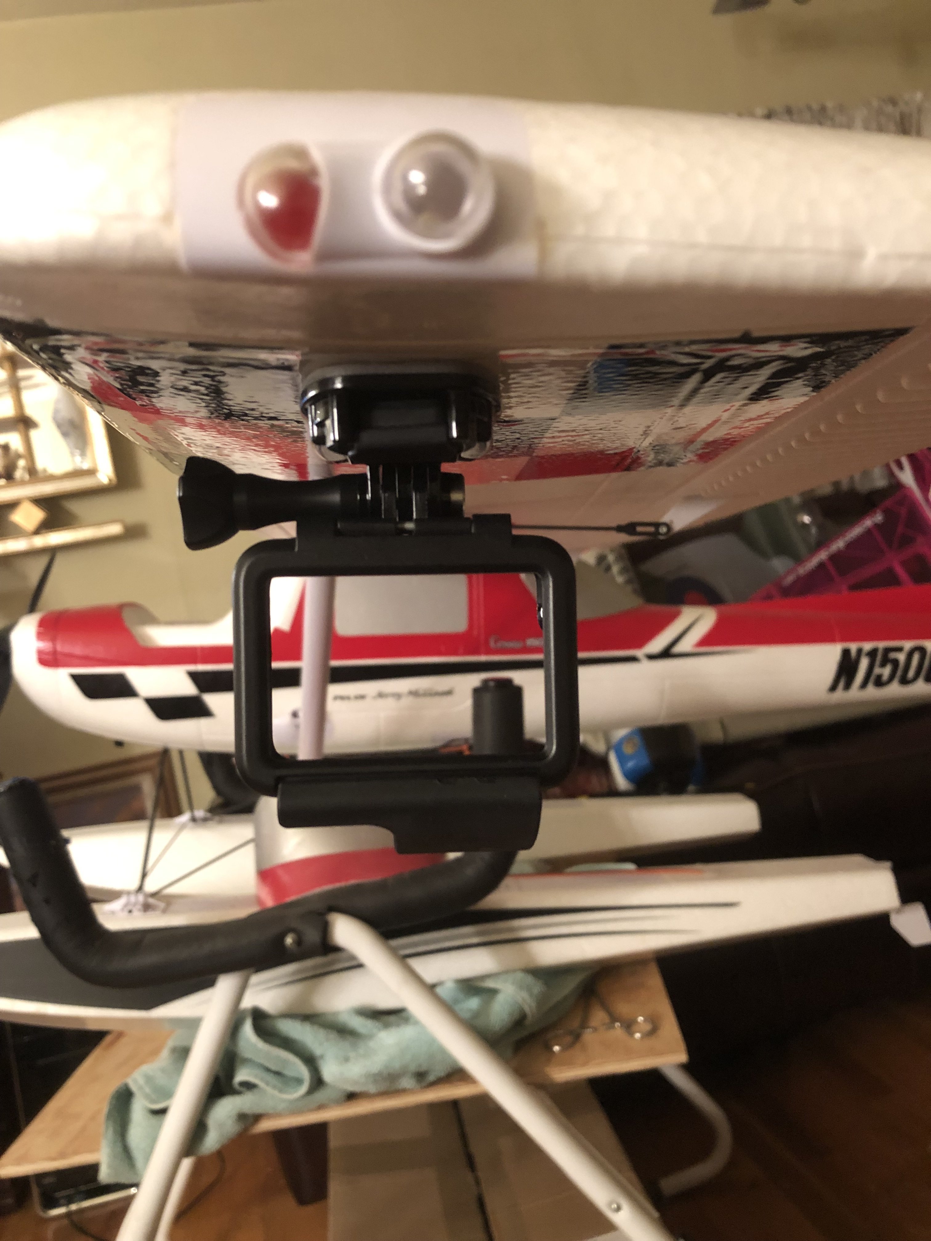 AKNick gave me this Idea. I added a few more Go Pro mounts to my Snow Float Flying Cessna 150 added a mount under each wing and one more on top had to go buy another Go Pro to mount one under each wing. Lazy man's way to achieve lateral balance LOL !!! We got more snow yesterday so tomorrow we are going Snow Floating