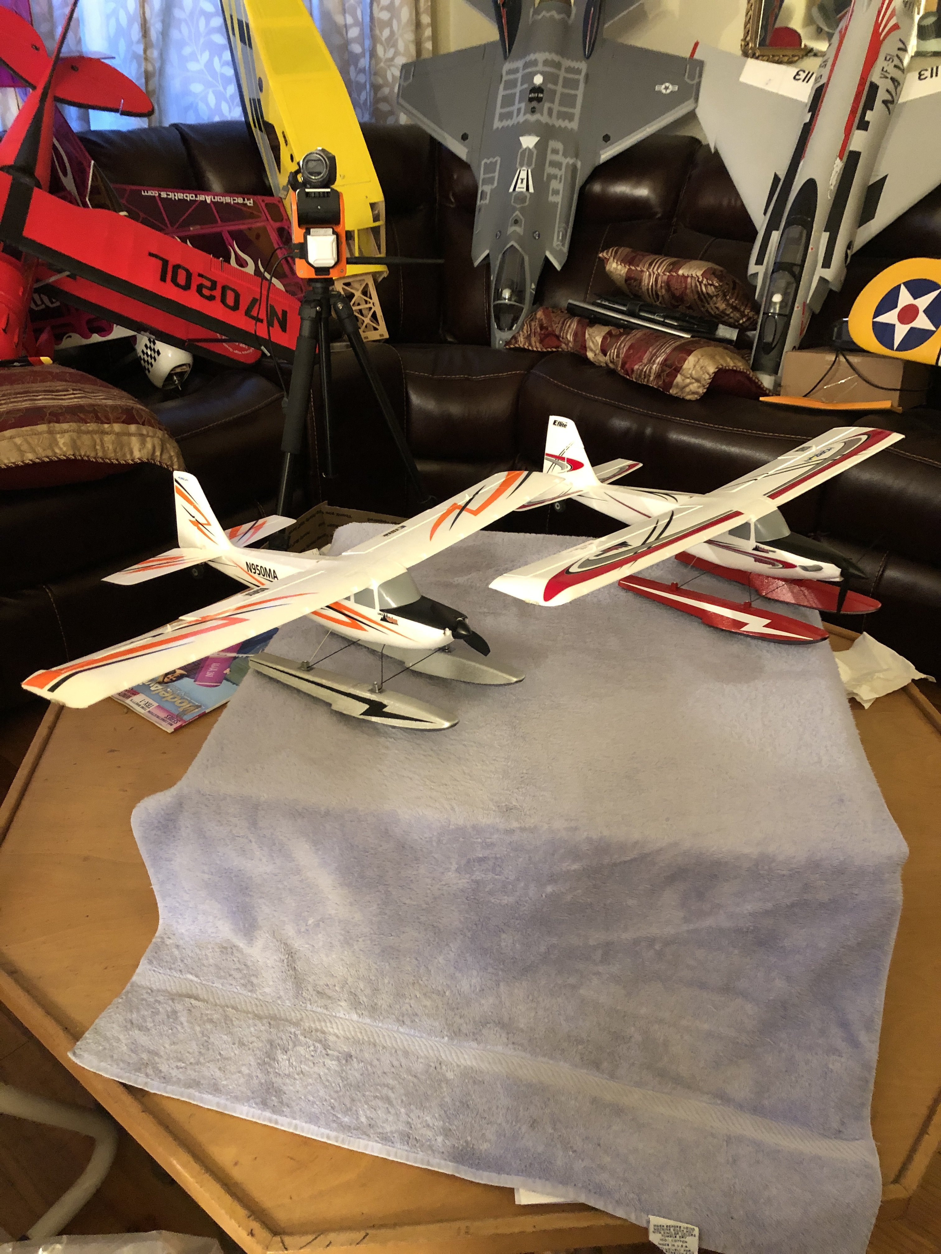 Just got done painting the floats for my new UMX Turbo Timber earlier today added the floats to the plane and programmed it My two Mini Timbers are ready for some Snow Op's when it quits snowing and the wind dies down.