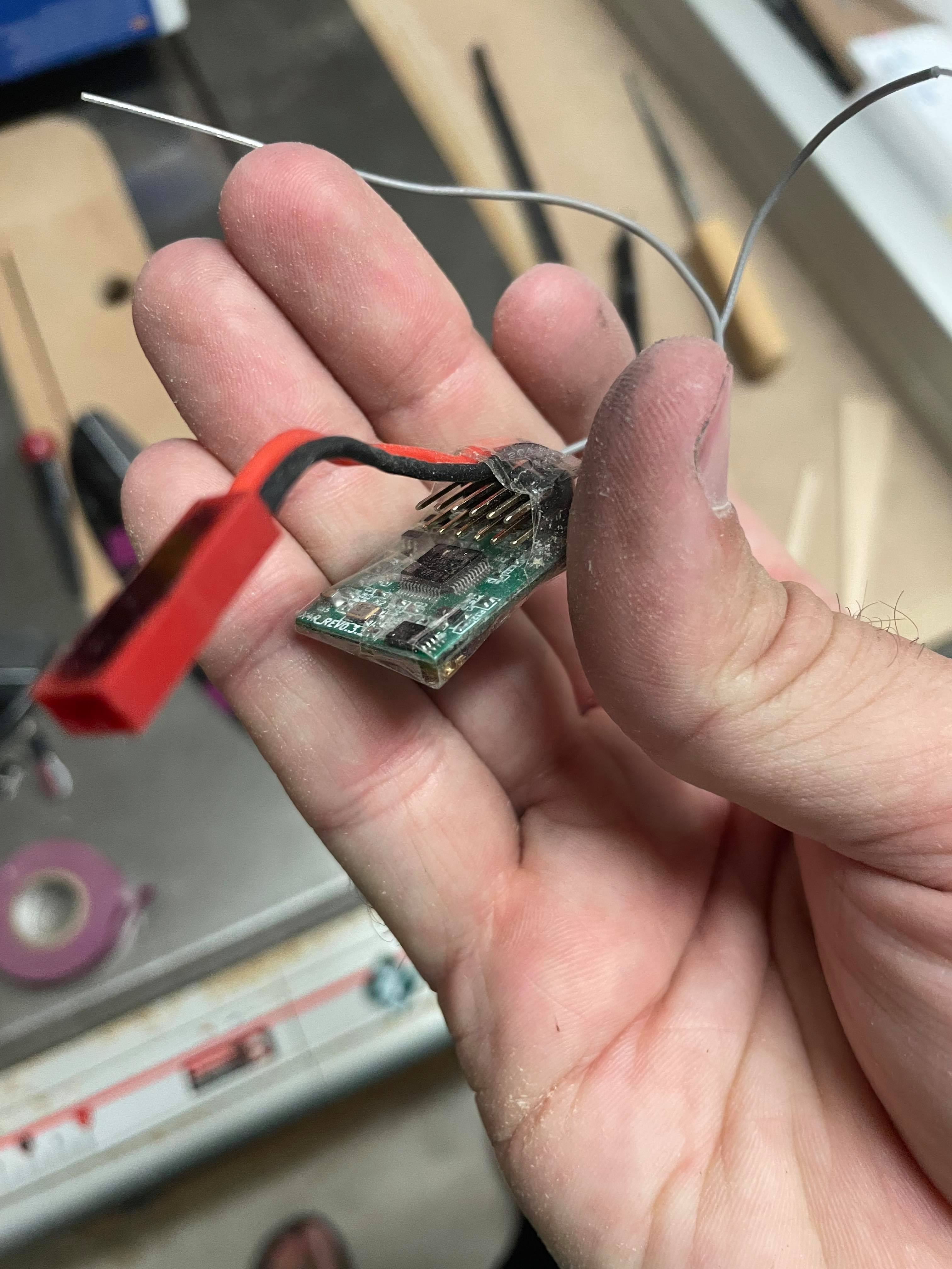 Nice work on the RX, I thought about it as well. The constraint is the width of my receiver. unfortunately Futaba is lacking in small 4ch full range telemetry receivers that can operate on lower voltage. I really want to have the voltage telemetry on my 1S battery and I have a bunch of R7008SB receivers so I decided to use what I had. I will end up soldering the leads most likely as well. I did end up ordering some tungsten putty last night.