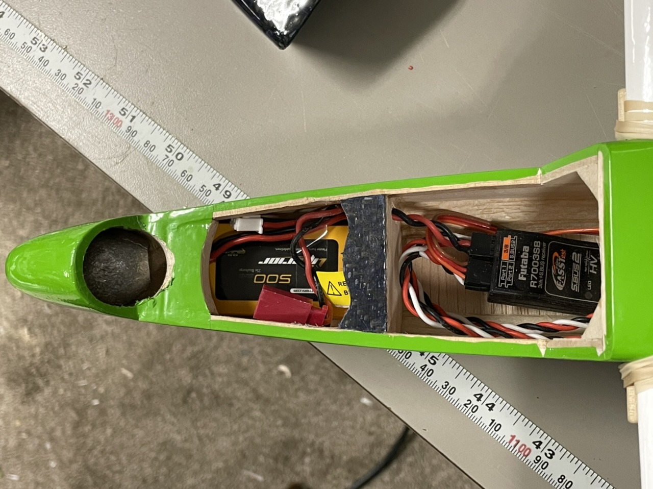 Almost got the Ridge Runt wrapped up! Without the battery it's 14oz, It needs about 4.75oz in the nose to balance... ouch. The Original ridge Runt specs are 18-24oz RTF so I will be at just under 19oz RTF Unless I can figure out a way to lighten the tail. Being a T-tail it's already pretty fragile, but I may consider lightening holes... too bad it's already covered.347B0EE7-1544-418A-A702-7BF8C7C30D21.jpeg