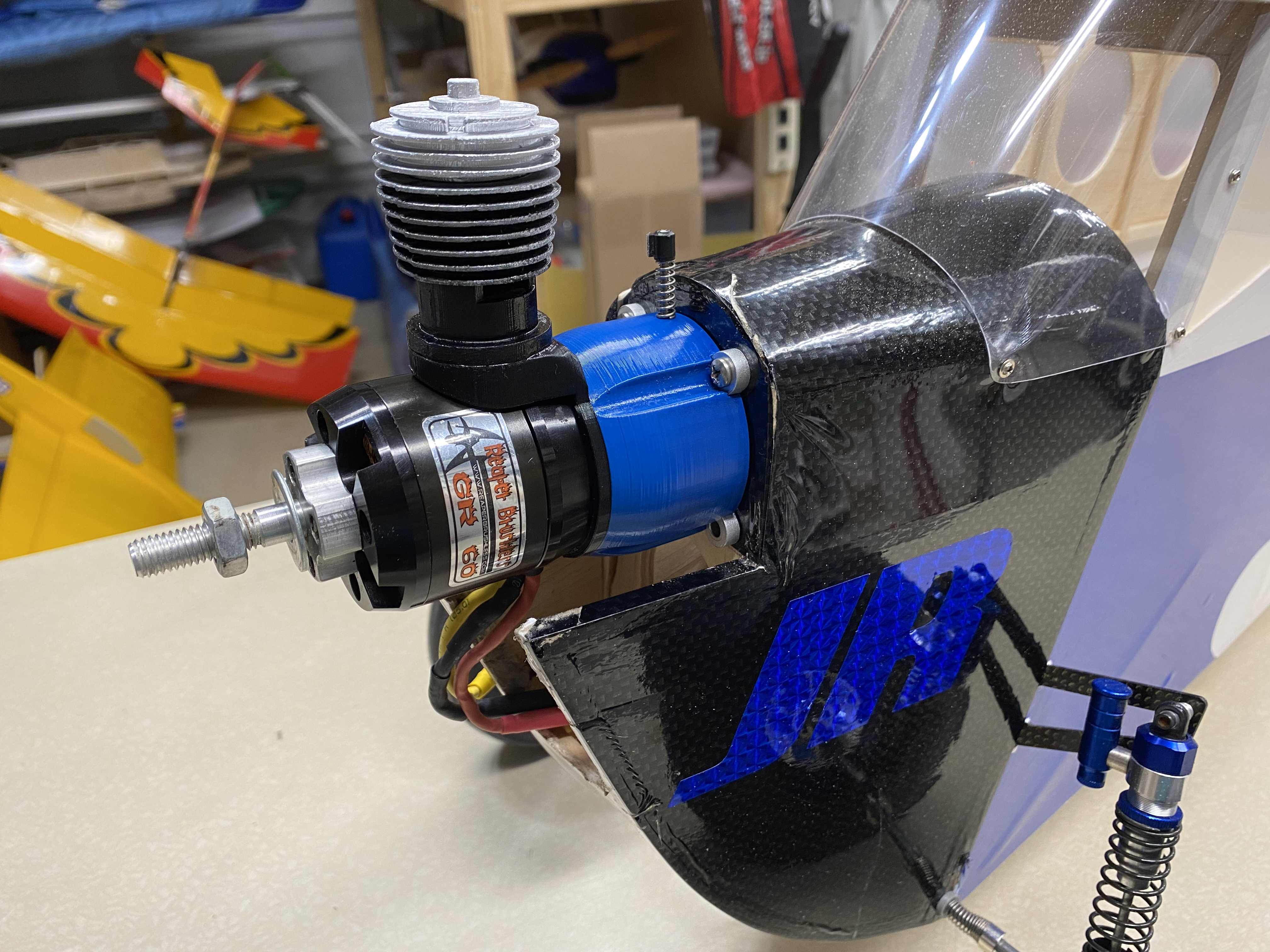 So a buddy of mine built a 60” lazybee as an electric conversion. He loves it but thought it looked. Weird with the electric motor so he asked me to design a 3D printable motor to fit around his outrunner but look like an old COX .049. I think it turned out pretty good.