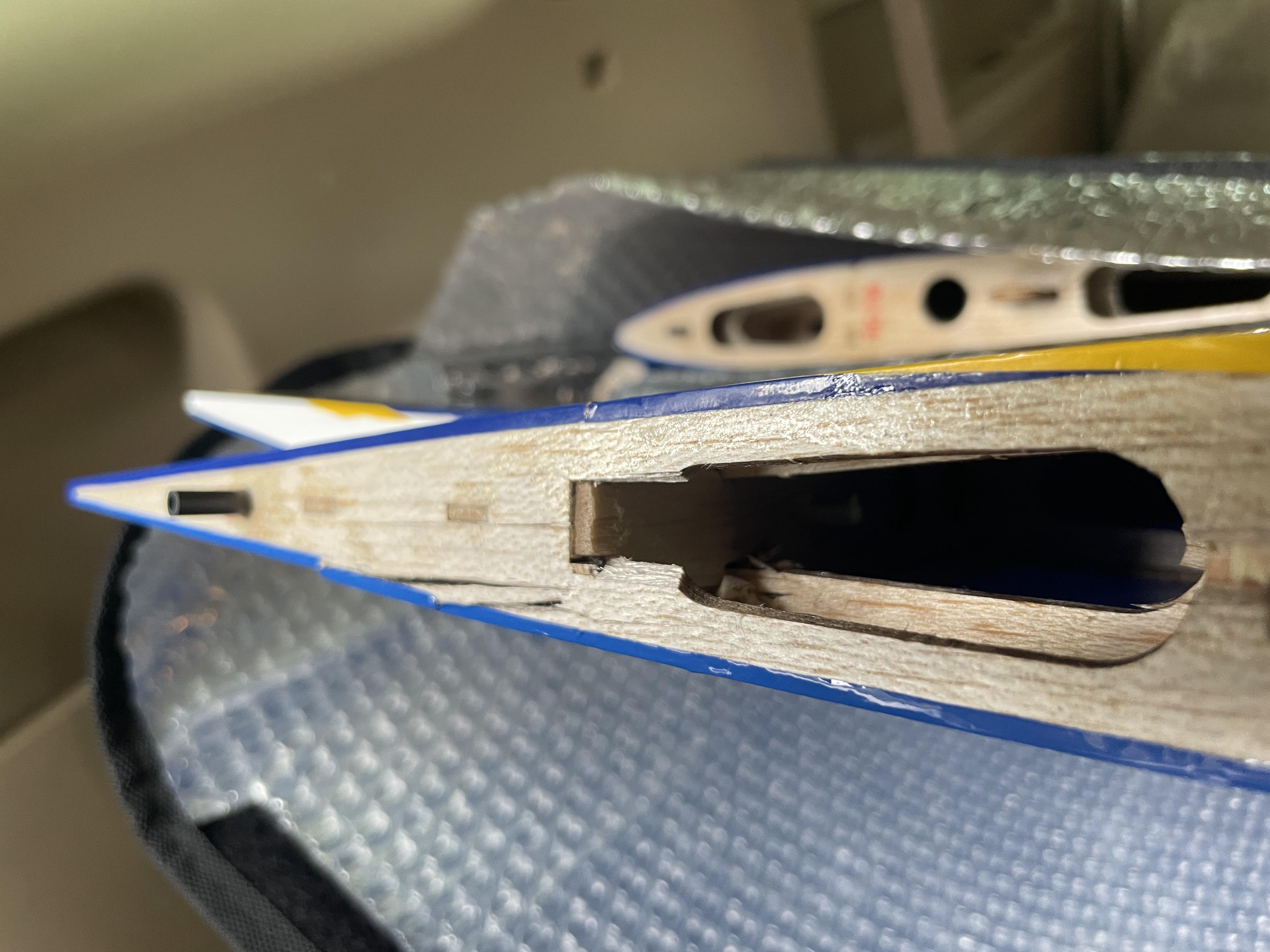 At first thought I was thinking I would need to order a replacement stab and elevator and the left side of the stab was sheered off at the fuse.