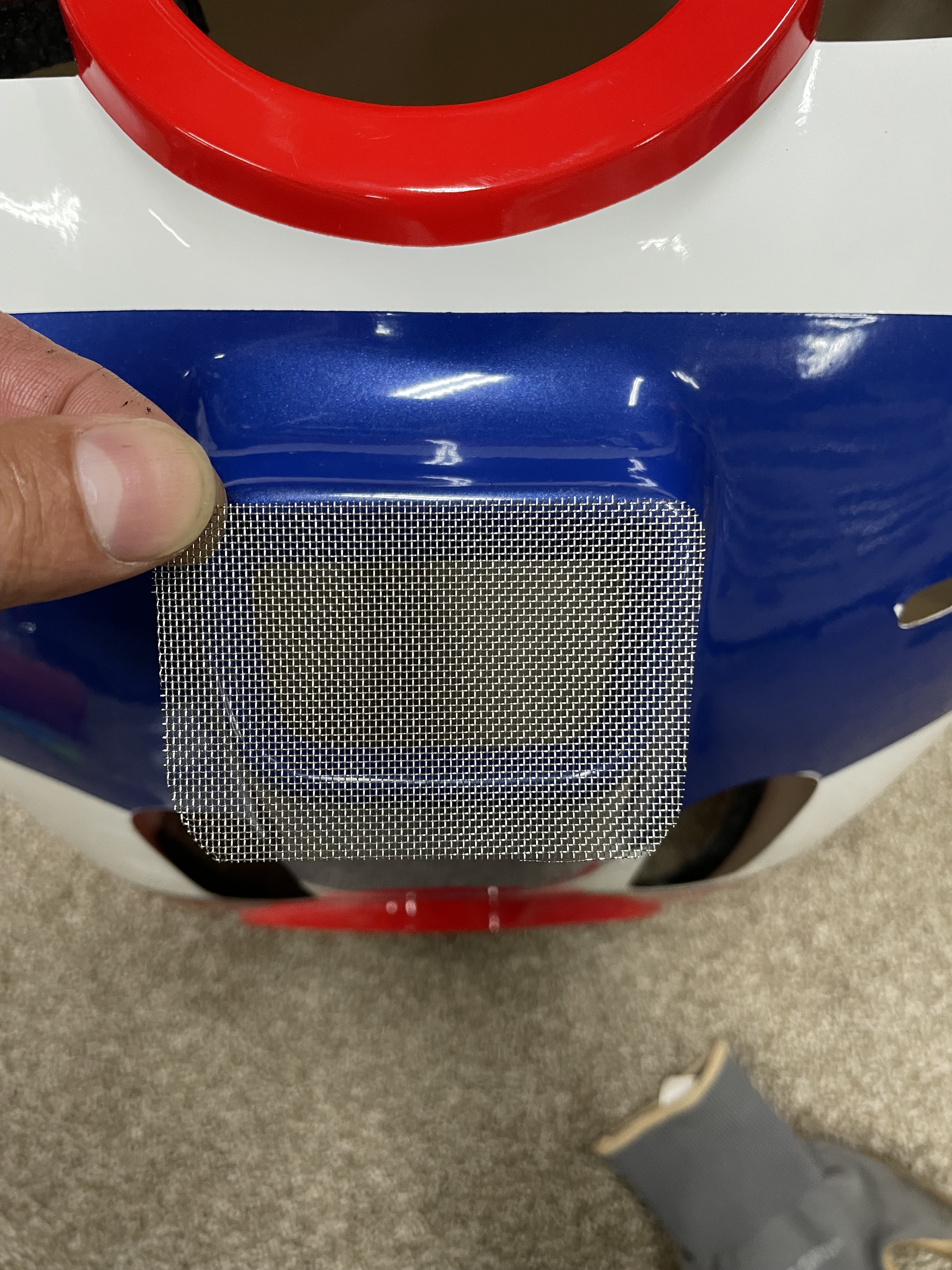When I was at Joe Nall I saw Jase Dussia’s Raven 180 cowl had a screen in the front of the air scoop. I went on Amazon and found the closest thing to it which was 30 micron. If you put your had 8” in front of you and blow then introduce the mesh screen the air flow is diminished considerably. This is nice as it not only acts like a bug screen but also prevents ram air from messing with the carb diaphragm.