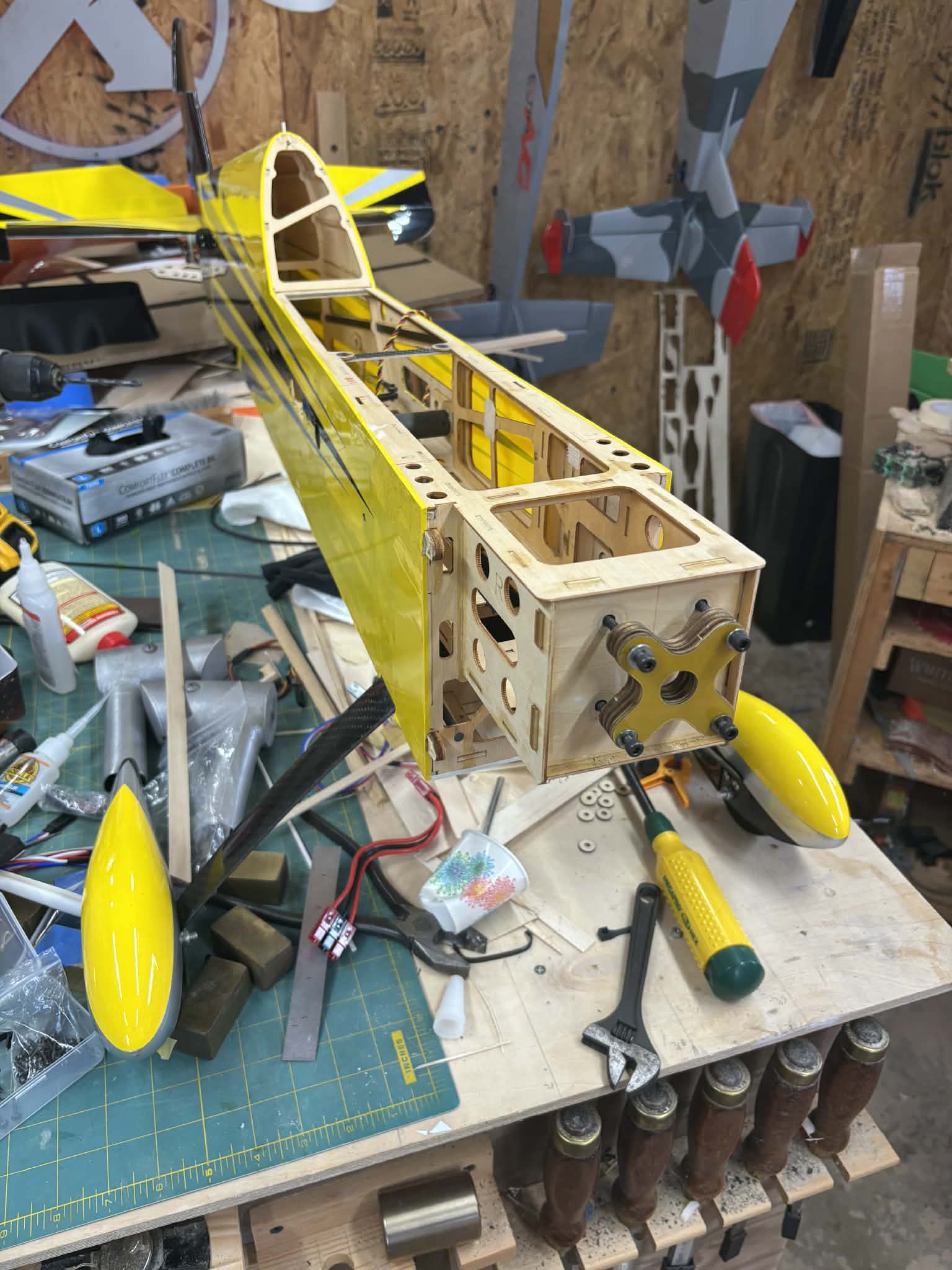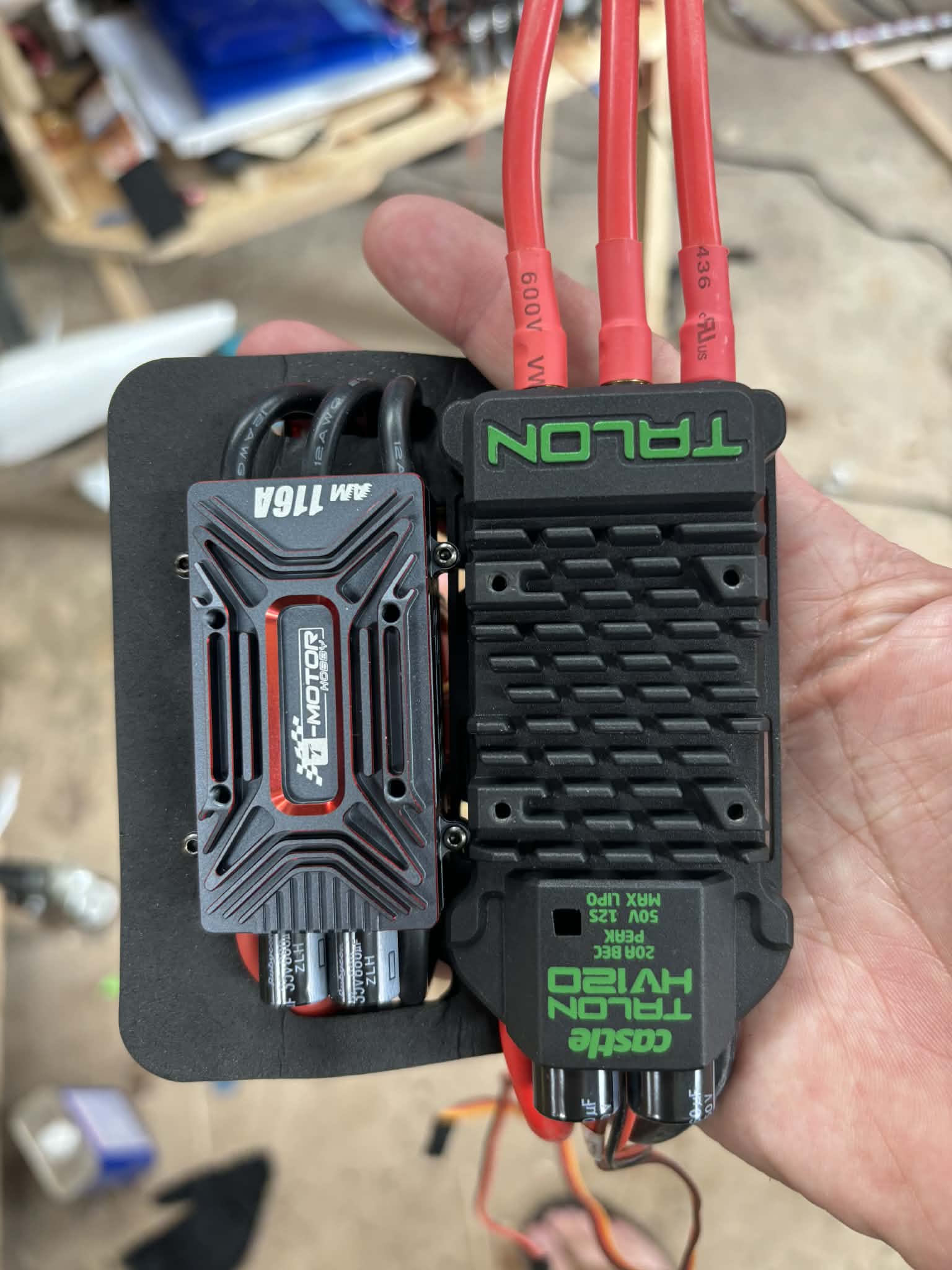 Picked up a new to me plane last week and got it maidened yesterday. 65" 3DHS Vyper. It came Receiver ready but I wasn't happy with a few aspects of it. First off was the ESC. Previous owner had it mounted all the way back near the rudder pull pull servo and second its a 12S rated ESC so it was huge for this thing. I had a spare T-motor AM116 laying around so I installed it just having to change the BEC voltage to 6V for the older servos in the plane. Second not shown in the pictures is the previous owner was apparently a huge fan of the Power Pole connectors and they where everywhere. I swapped to traditional bullet connects for the motor to ESC connection and my preferred XT90 connector for the battery.