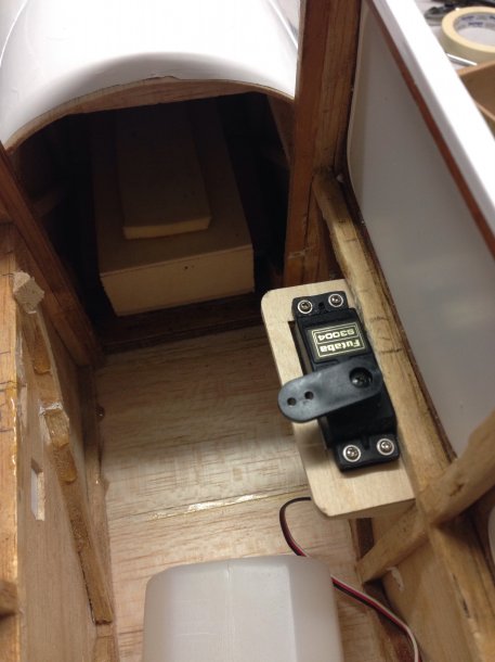 Not much again today. Made up a throttle servo mount and got it glued in place. All that's left is to install the elevator and wait for the engine to show up. Once it gets here I can build a tray hold the battery and receiver in the right place for balance.