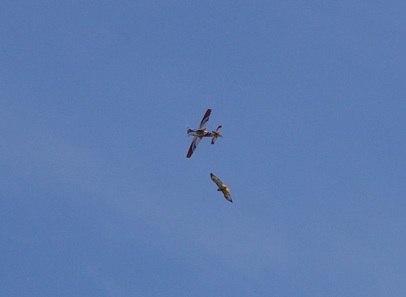 That would certainly be a lot less intimidating than this one was. For size reference the Extra in the photo is 90" span and was closer to the camera than the bird.