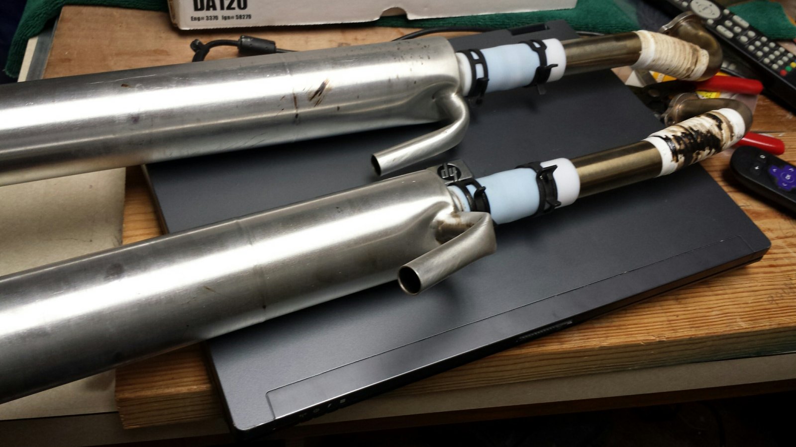 Looks like the right can will need some re-sealing at the joint on the stinger??