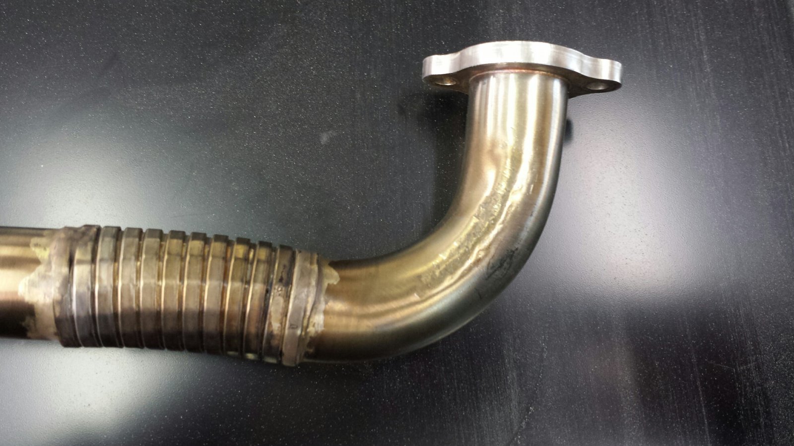 The header was a little more difficult. I really couldn't figure out a way to pry up on it while applying heat that wouldn't damage the flex section, so I did it all with a hammer, while resting the opposite side on a block of wood. I still want to do more finishing work on the header, but it would function just fine the way it is.