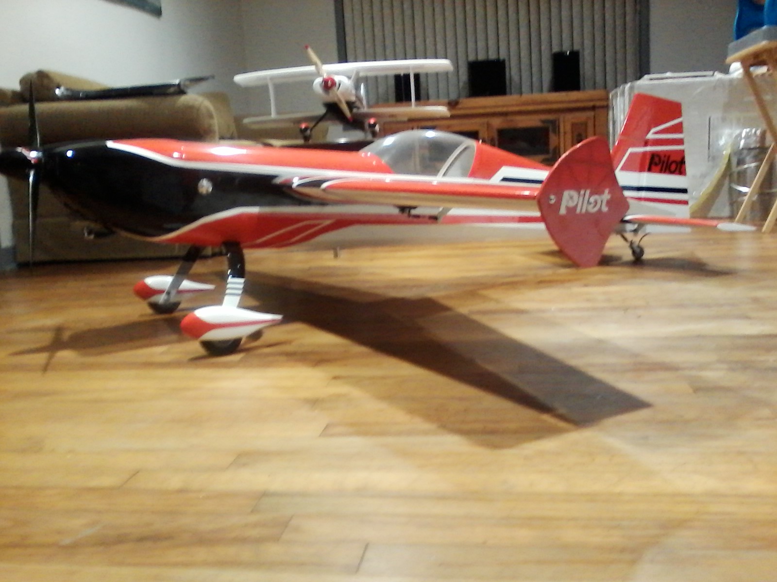 . Giant Scale News sticker down the side where "one team one mission" is and my birth year as the race number. Radio logo and Pilot- RC bottom of wings.