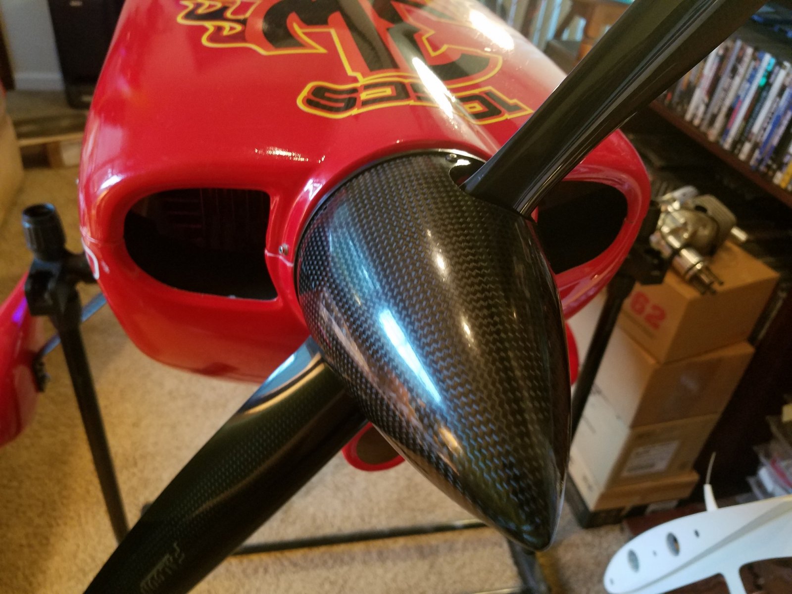 The Petes 4.5"x6" spinner arrived today. Very pretty and brand new as they come. So I test fit it to the Pilot Edge. I dunno guys...I still like the Tru-Turn better. What do all of you think? As a side note: the spinners are not bolted down tight. That is why they look as though they don't fit the spinner ring on the cowl. But it should give a general appearance idea right?