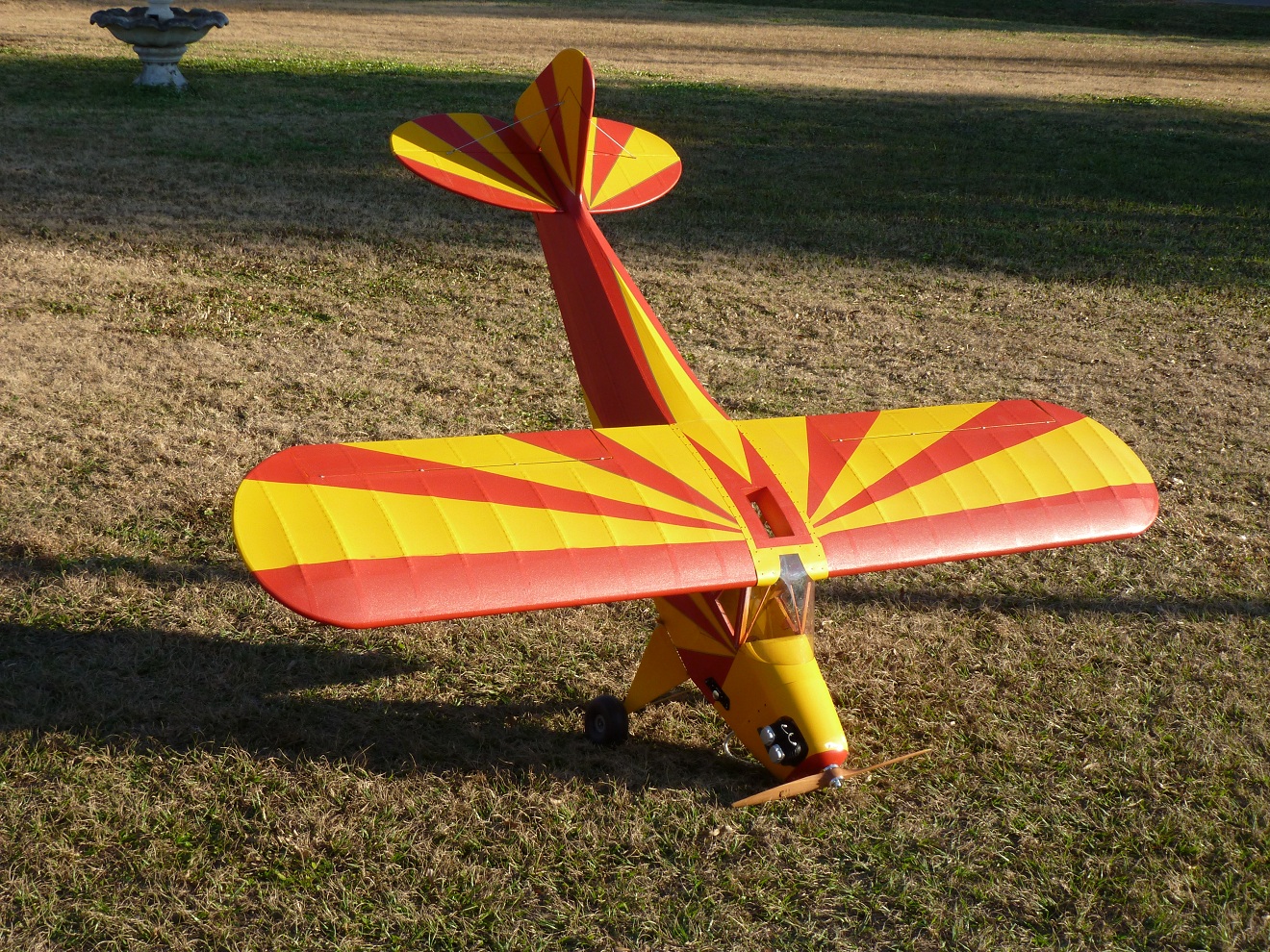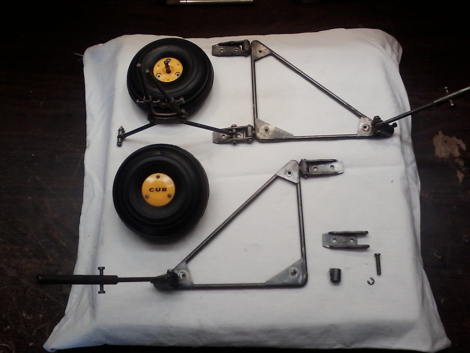 It is just the fuse and it is even missing the rudder. LG has broken weld on one of the carriers. The cub wheels were covered in garage gunk and mildew but cleaned up very well. I was surprised to see that they are not DuBros but China Model Productions. Going to see if I can find a set of wings and rudder for it (wings attach with two carbon tubes through fuse). A cowl also. It is 1:4th or 1:5th scale (Fuse measured 48.5" minus rudder ). Wheels 3.5" so I'm thinking more likely 1:5th scale which would probably be a 88-90 inch wingspan. Looking at the fuse fire wall appears to never had a motor mounted. Makes me wonder how the gear got broke :confused: and if the donator has other parts and who he is. Must investigate :sneaky:.