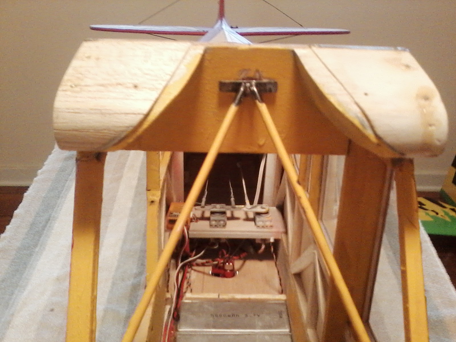Got a bit of the little detail stuff done that will give me ease of battery maintenance and peace of mind knowing the wing wont come off in flight. Going to use Hysol to mount the LE wing block back in place. I manufactured a hard carbon steel brace for the jury struts and soldered it in place. Radio is in and functioning but still waiting for the choke servo and two sattelites that get installed in the fuse cabin sides. The Xoar prop adds a nice touch. Waiting for a new Rcexl ignition and cut off switch to get here as well.
