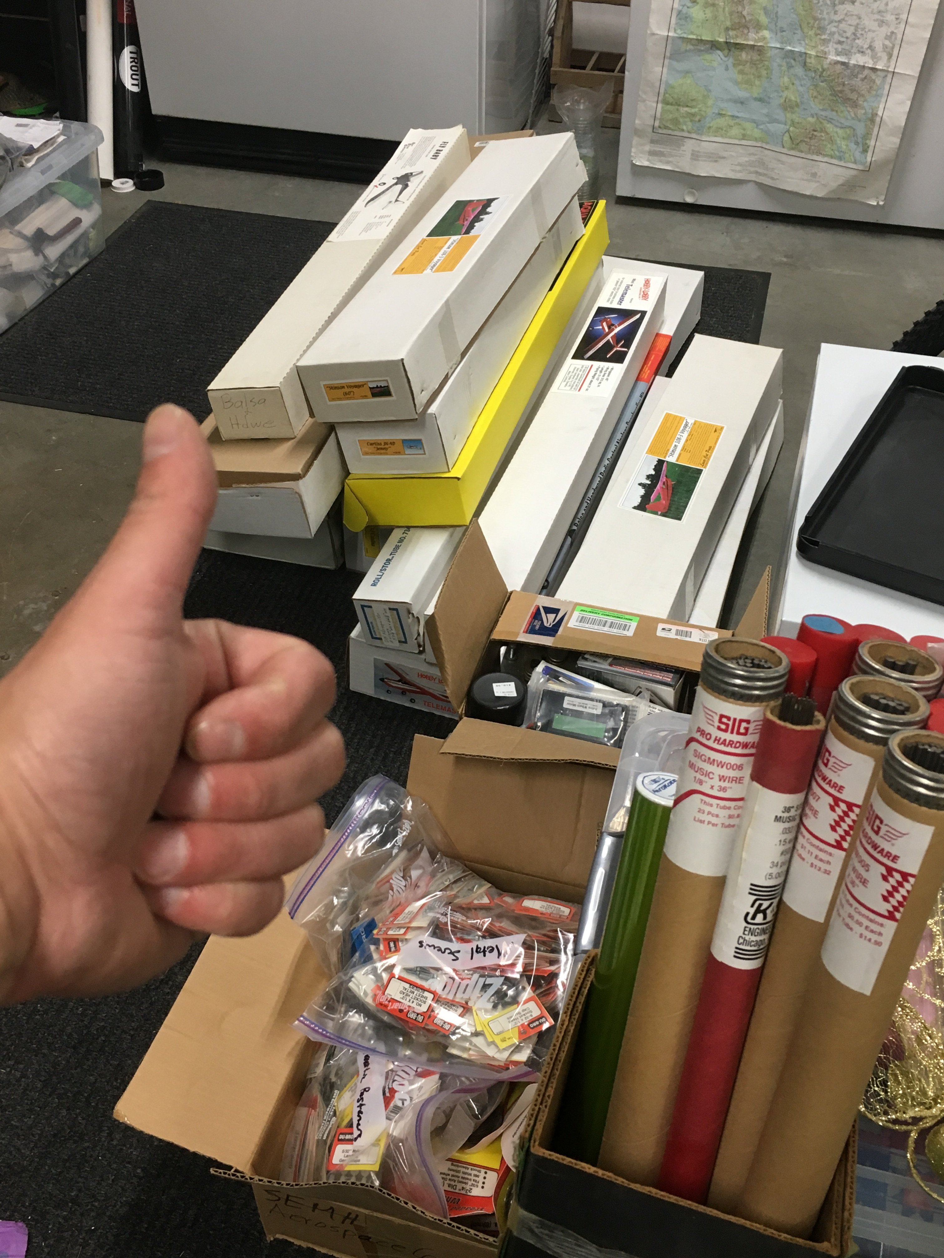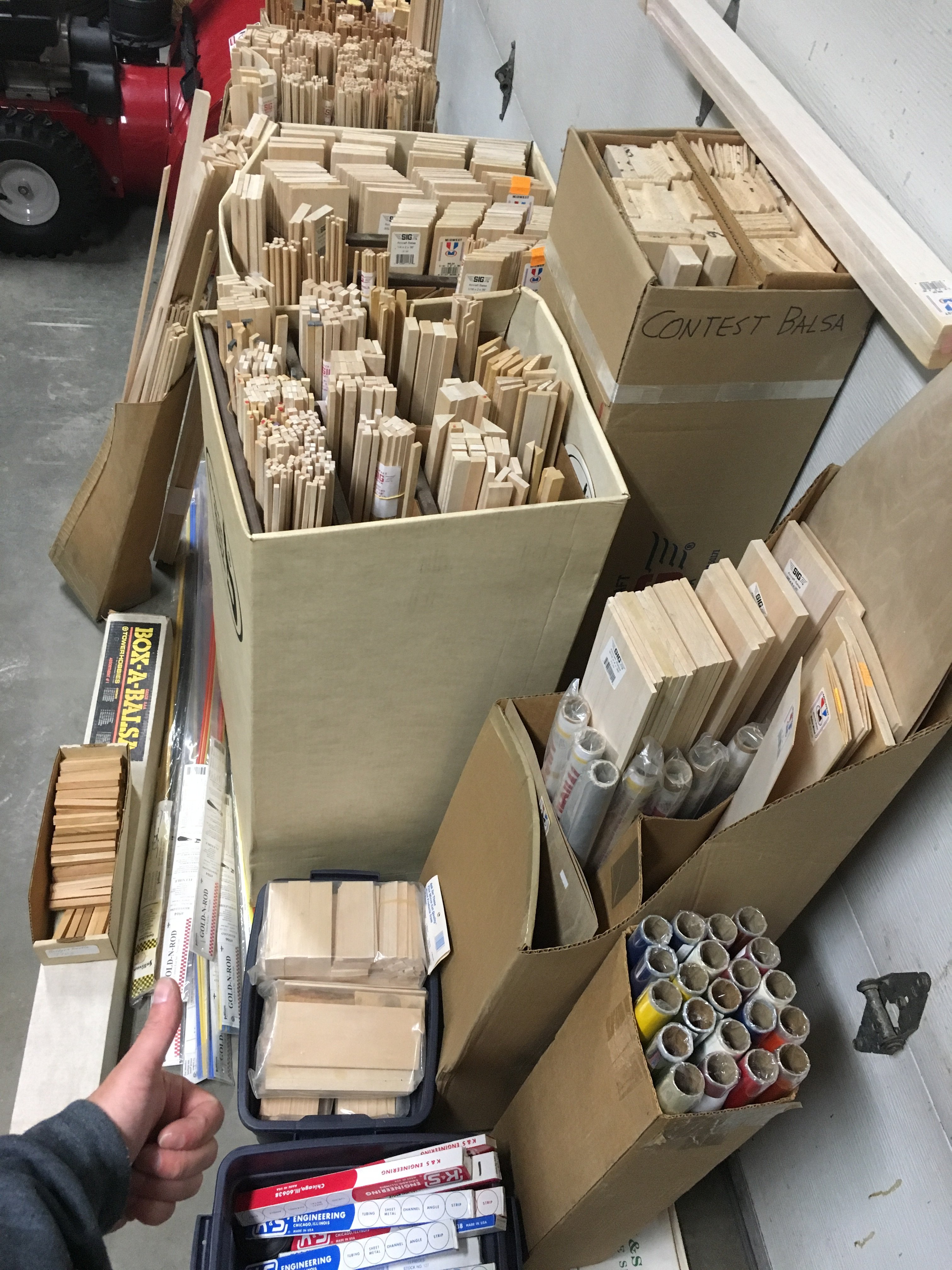 Well.... I spent five bills. Five boxes of balsa, one box of spruce, box of wire, box of Nelson covering, eight gold-n-rod bags, box of K&S tubes, box of misc hardwood blocks, box of tires, box of miscellaneous hardware, box of covering items, custom wire bender, oh and a dozen kits.... I got home and told my wife I loved her very much. She asked if I brought home more than two airplanes and if I spent over five hundred. Um yea... no... I love you.