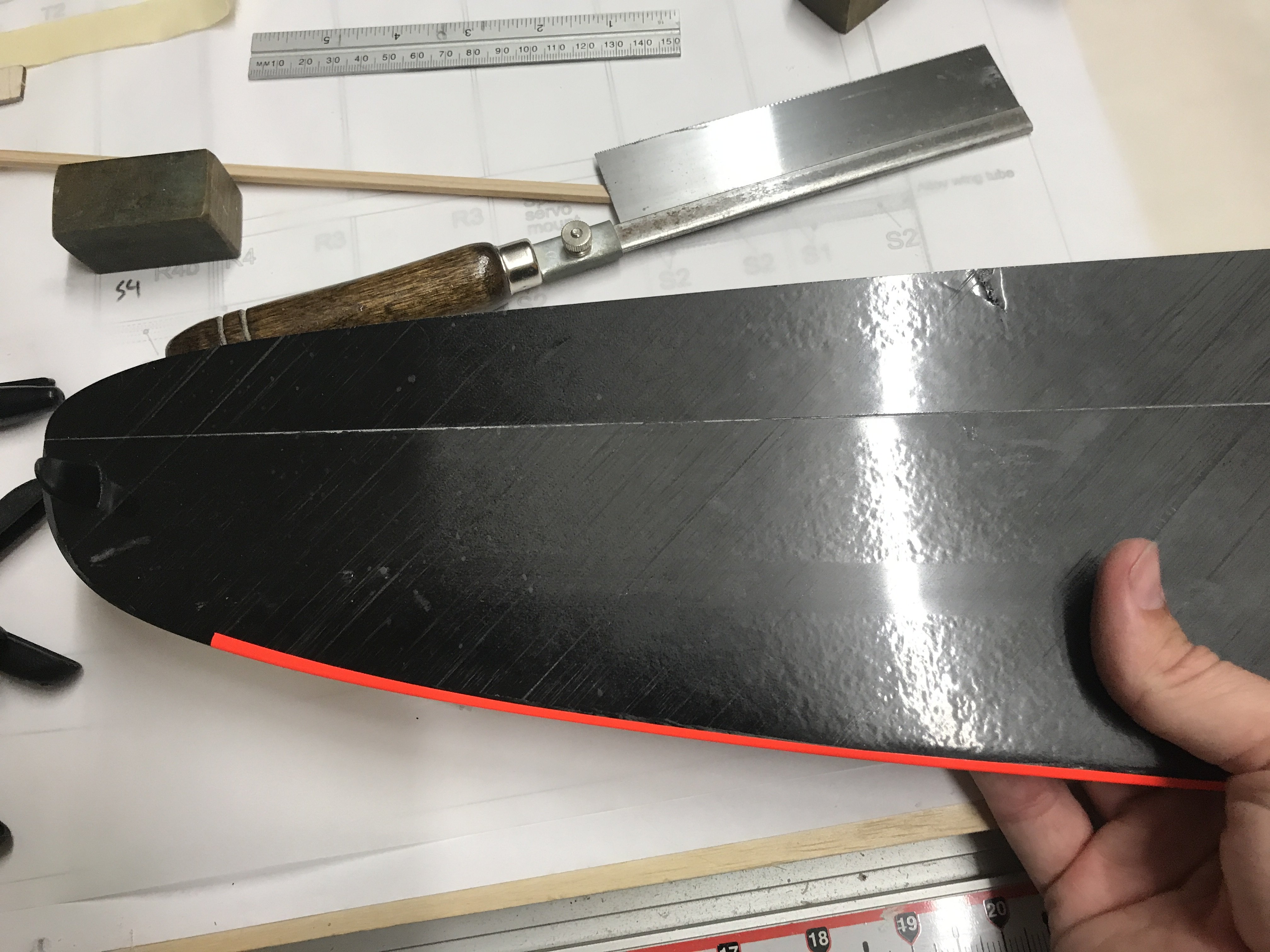Had to do a little repair on my dlg after a dumbass moment yesterday. Buddy offered me to fly his brand new BAMF dlg. Third flight I was ending up a little short on landing and totally missed that my dlg was in the way. Caught the te of the aileron on mine with the bottom le of the vertical on his. Mine had to be repaired his will get a replacement part. Literally less than an hour flight time on his new bird and I go a F it up. Felt so horrible.