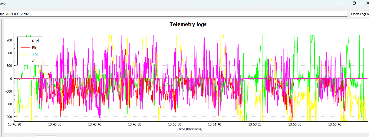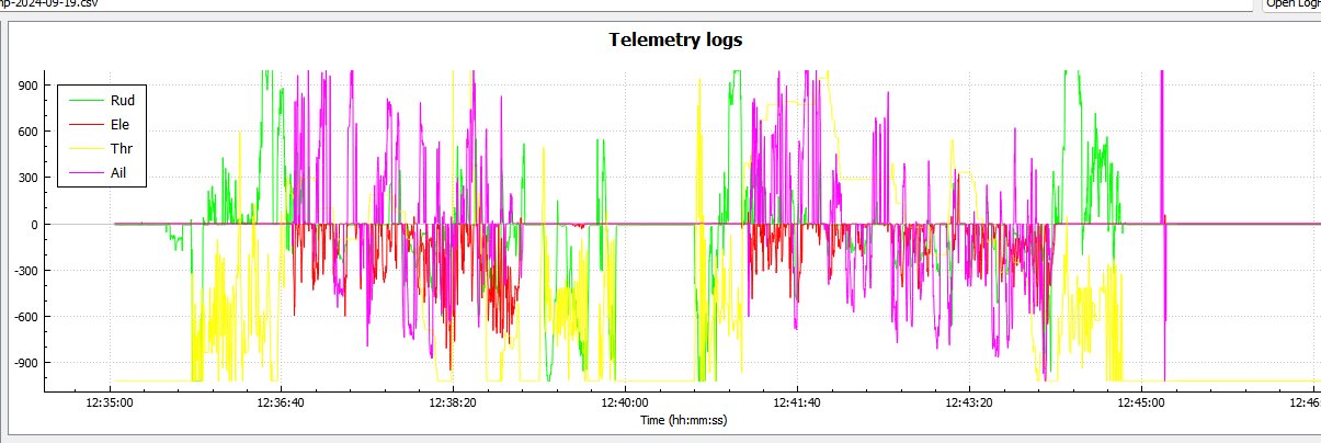 My second experience is with the Eagletree Guardian. I had one in my quarter scale Cherokee, put it in to play with and found it to be rather nice, the plane flew the same with or without it it was just less work with it on. Sometimes I would just to to land using throttle only, get the plane lined up and ease it in by controlling the throttle only. You need a laptop to tune it. After flying in the NASA Fall Classic with 7MPH cross wind on three days I decided to put one in the Champ. The company is gone so I had to find the program online off another user. I only put a half dozen flights on it after the install. Below are two telemetry logs before and after the installation, I made the logs the same time length about 13 minutes, the top one was during the contest. I apparently landed midway during the second flight and took off again. Which one looks like less work? I found two Guardian online and purchased those.