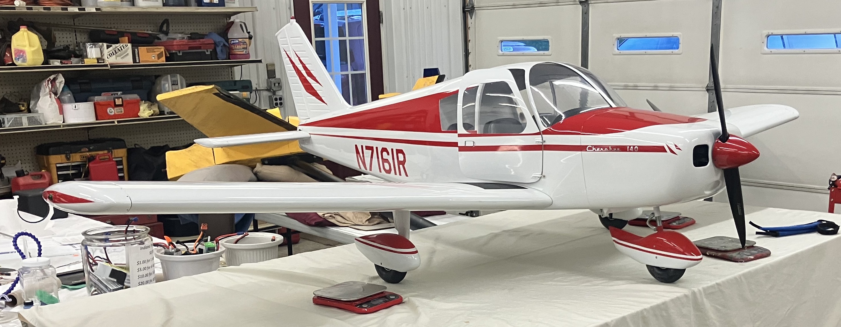 Using two 1800 ma 3 cell batteries for the redundancy buss and one 850 ma four cell for the starter. This will add another 11 ounces bring the weight to 35.5 pounds. That makes the cubic loading 10.5 and summing moments puts the cg at 5.84 behind the leading edge, this is with the batteries in front of the plane.