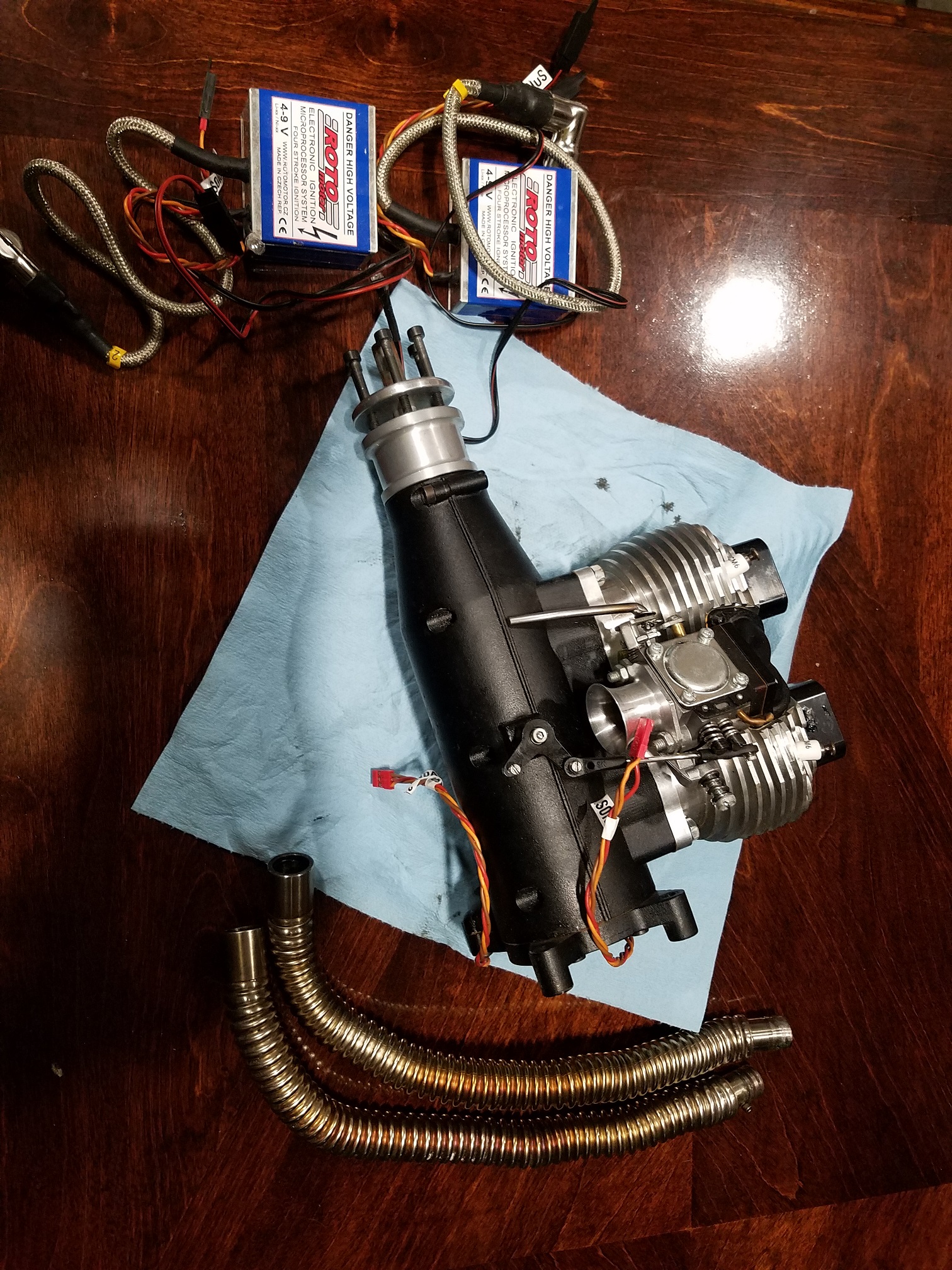 New L80 canisters (2), gaskets and not pictured, new headers for the Beast 157cs. She has been a little down on power the last couple of flights. I swapped out the cans for new L90's. Ummm, pretty sure she don't like them. So back to a new set of 80's. And I figured what the heck, I am going to re-gasket the entire engine. I see one cylinder gasket starting to seep. So might as well take care of it now before it becomes an issue as was the case a couple of years ago. I am pretty sure I can't get lucky like that twice in a row. LOL