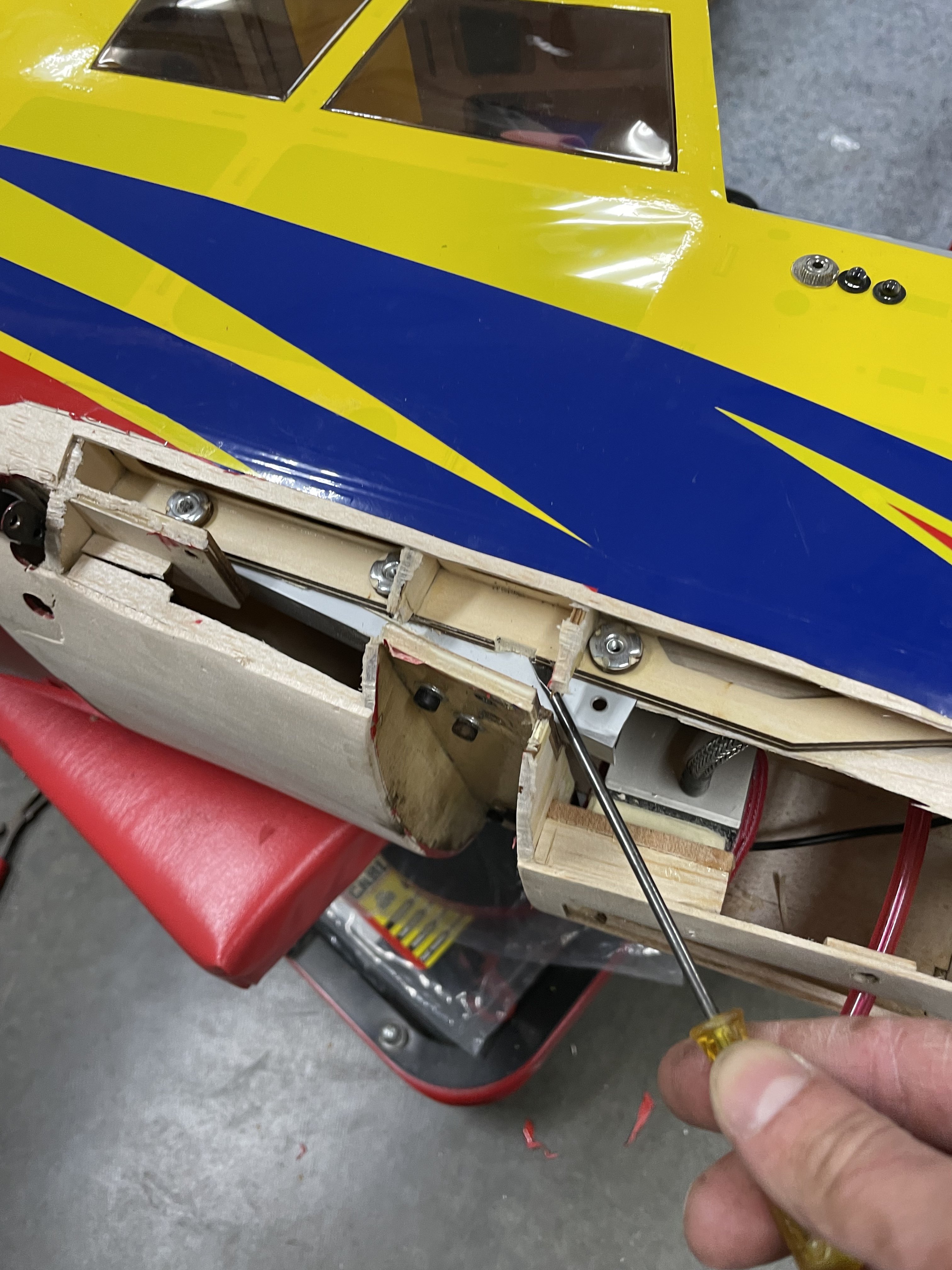 The undercarriage needs the most work along with the fuselage. The servo motor burned out - rightfully so! Holding a 20# plane for that long. Hung up the fuselage for now.