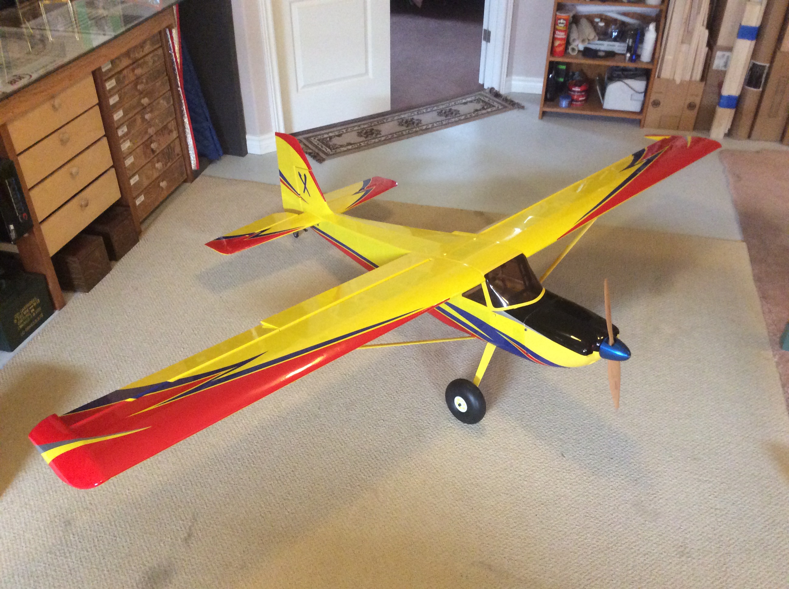 Well going make a set of wing bags for the plane just not sure where to do it. And after some difficulties I have managed to figure out how to program a kill switch for the electrical motor, just have to set the final trim but that will be set at the field some time from now.