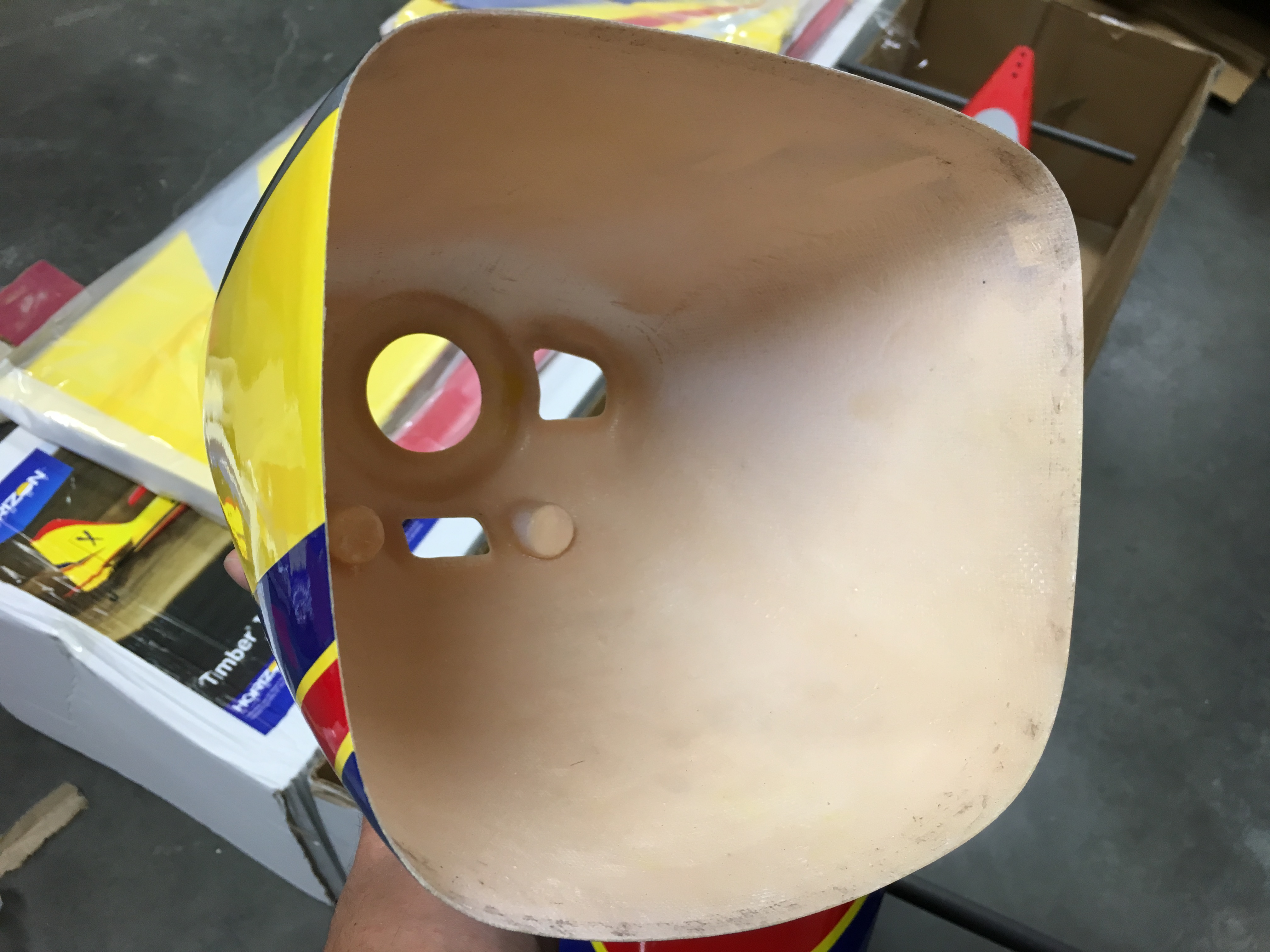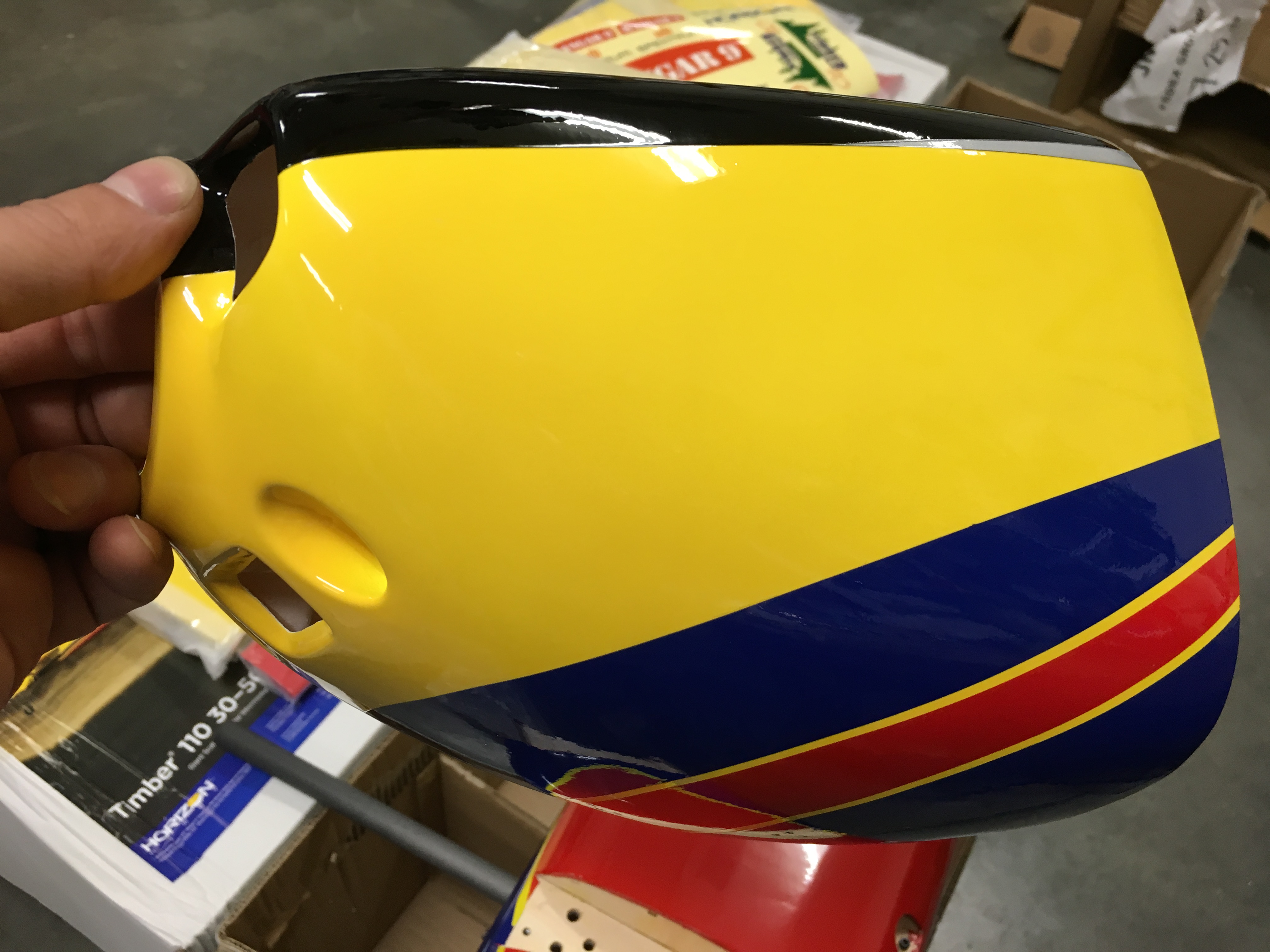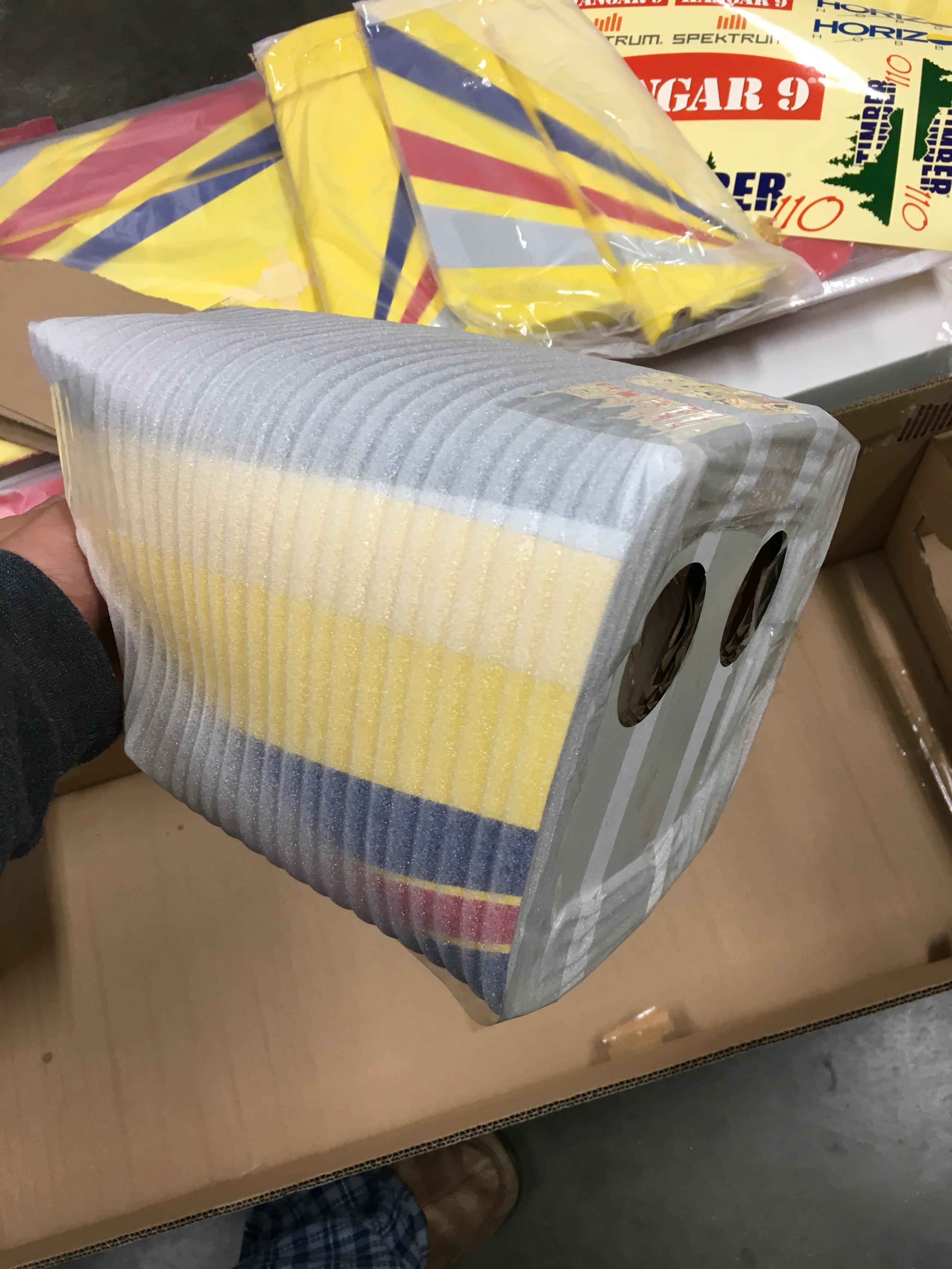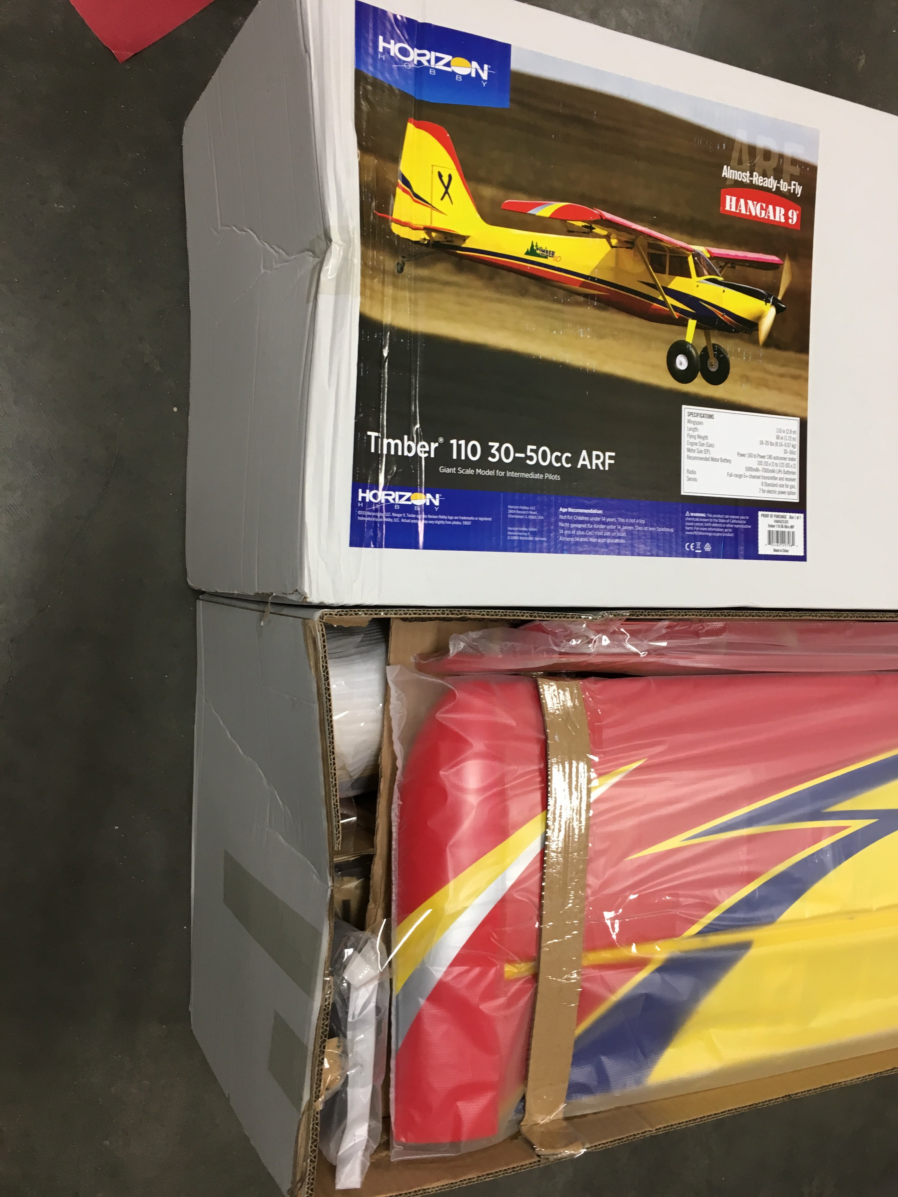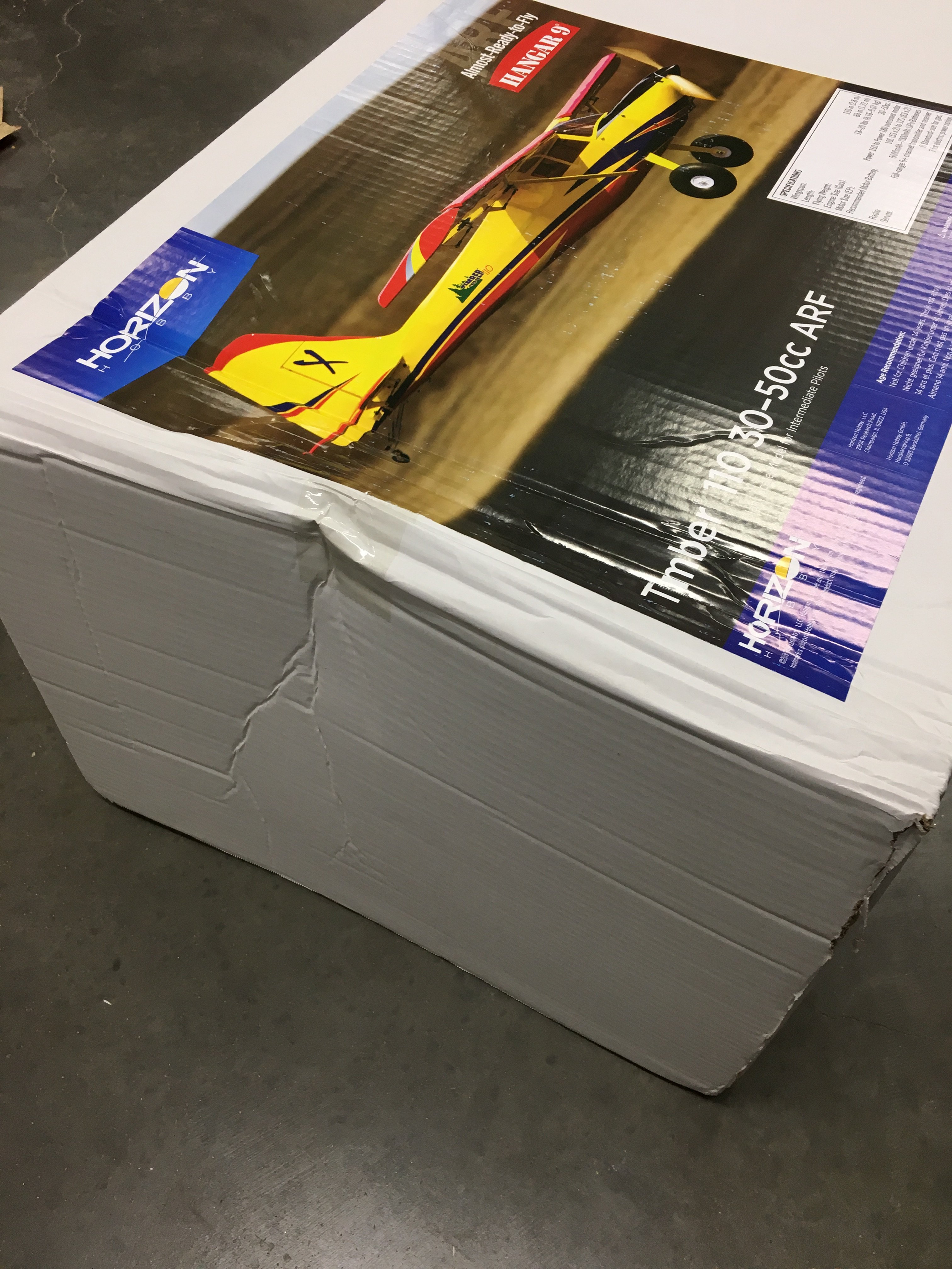 Plane is double boxed and received no damage to the plane. Just a few dings and dents. More pics to come! Shes a beauty.