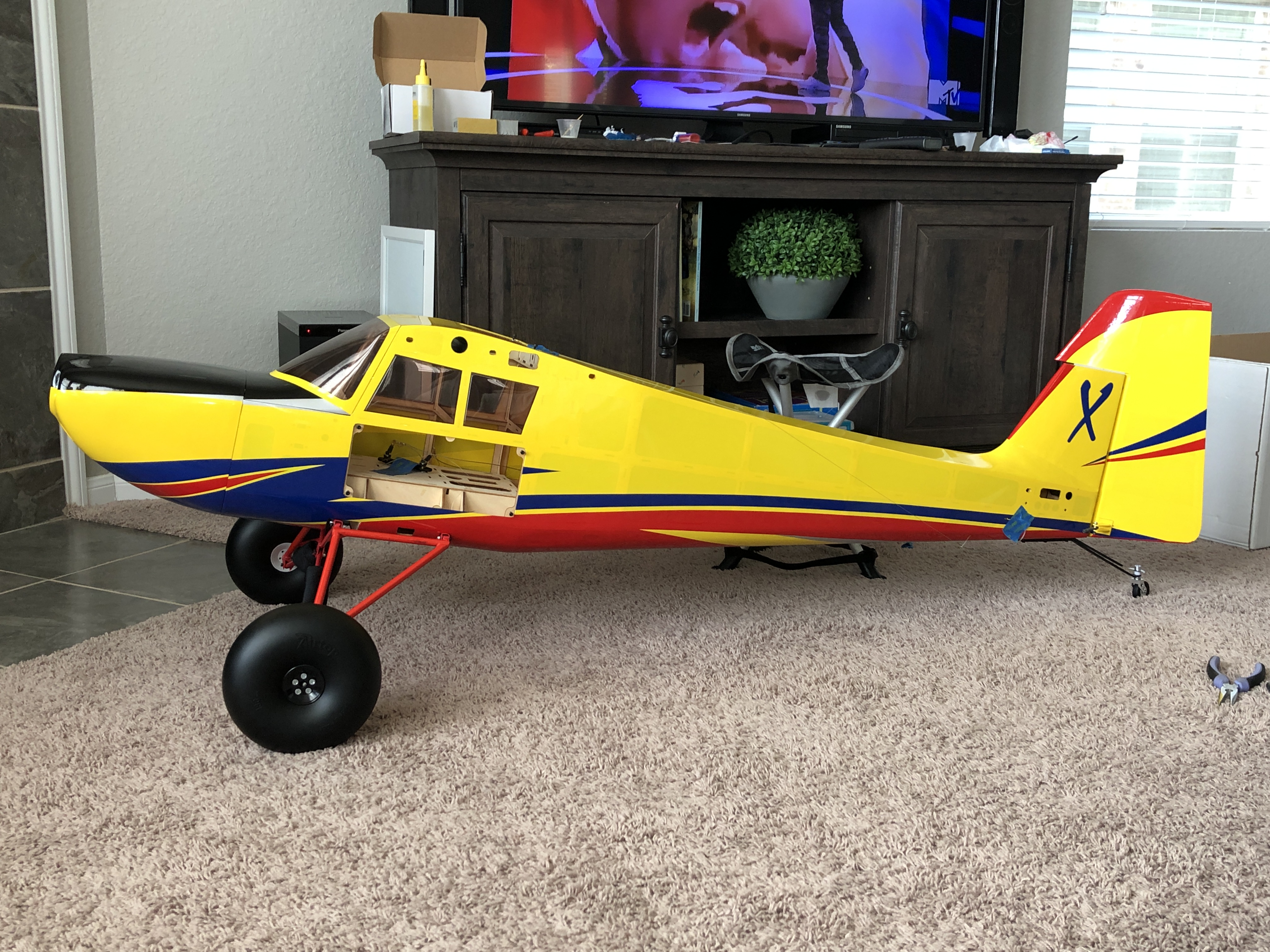 Mine is coming along. all surfaces complete, all servos installed, landing gear (FINALLY finished), switches and wiring installed, went around the nose and cockpit all over the frame and applied epoxy to critical structural places that looked like they lacked enough epoxy.