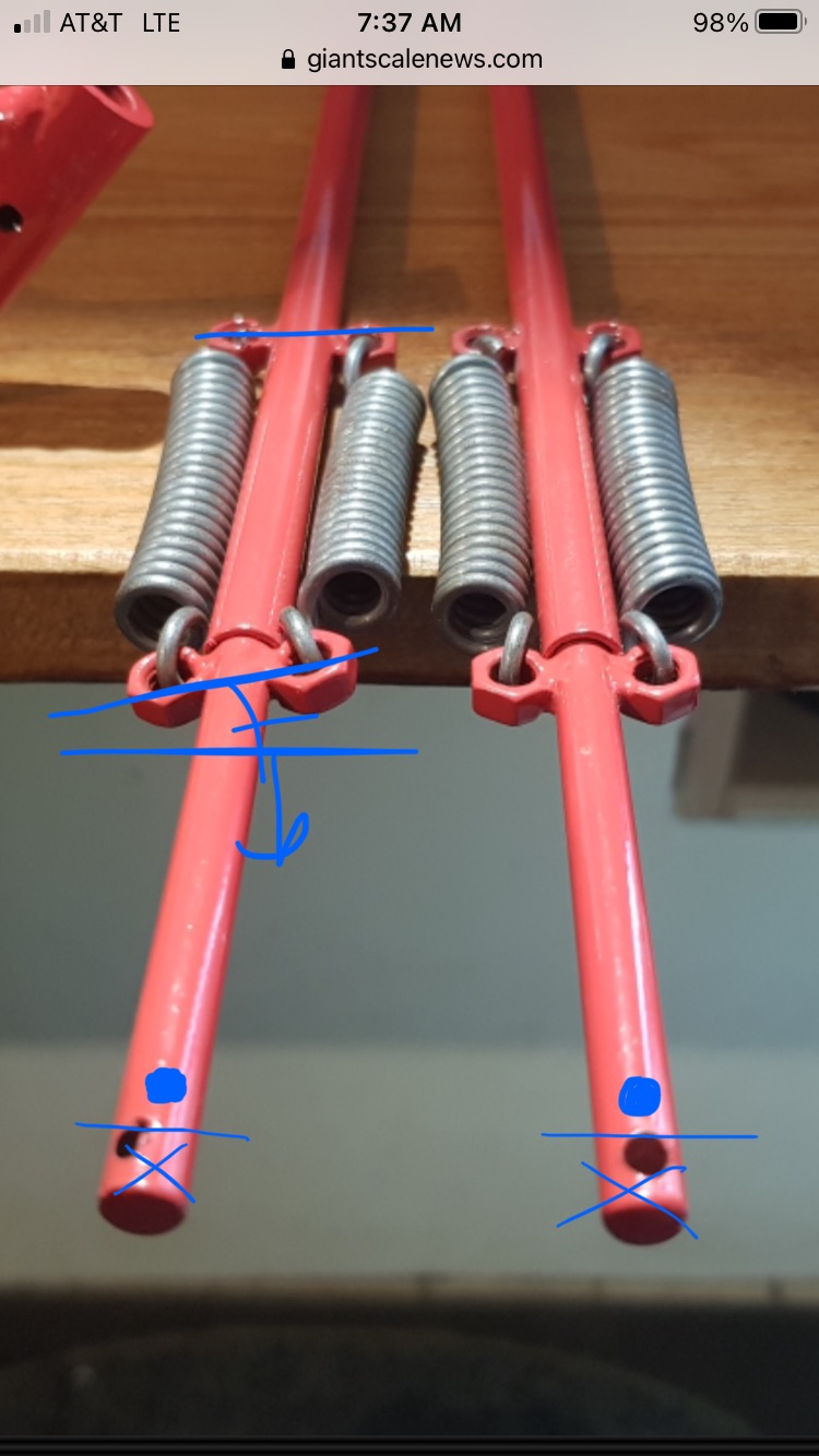 the center struts appear to be aligned ok. I would cut them and drill new holes. This will give you a little more ground clearance and some positive camber.