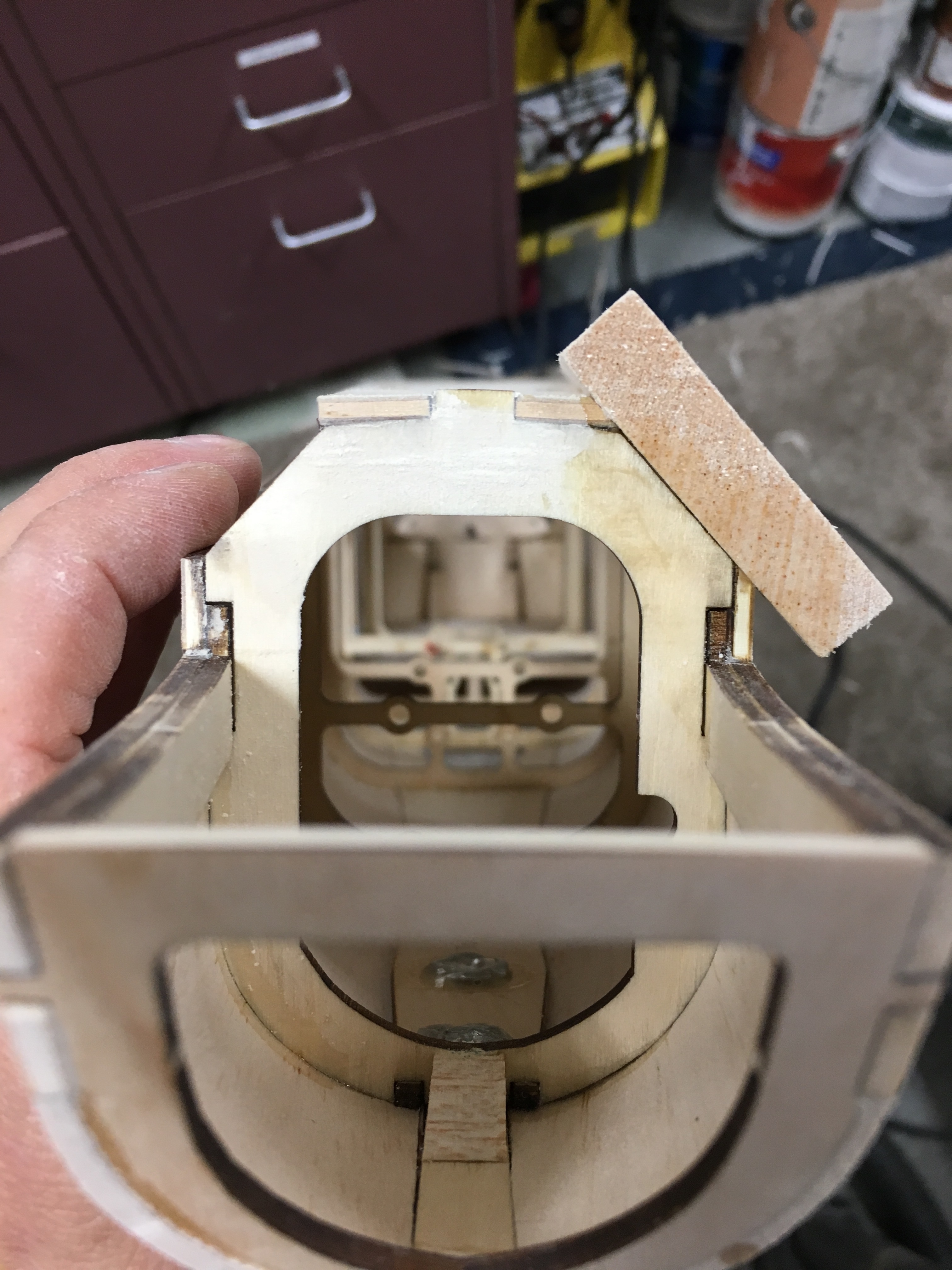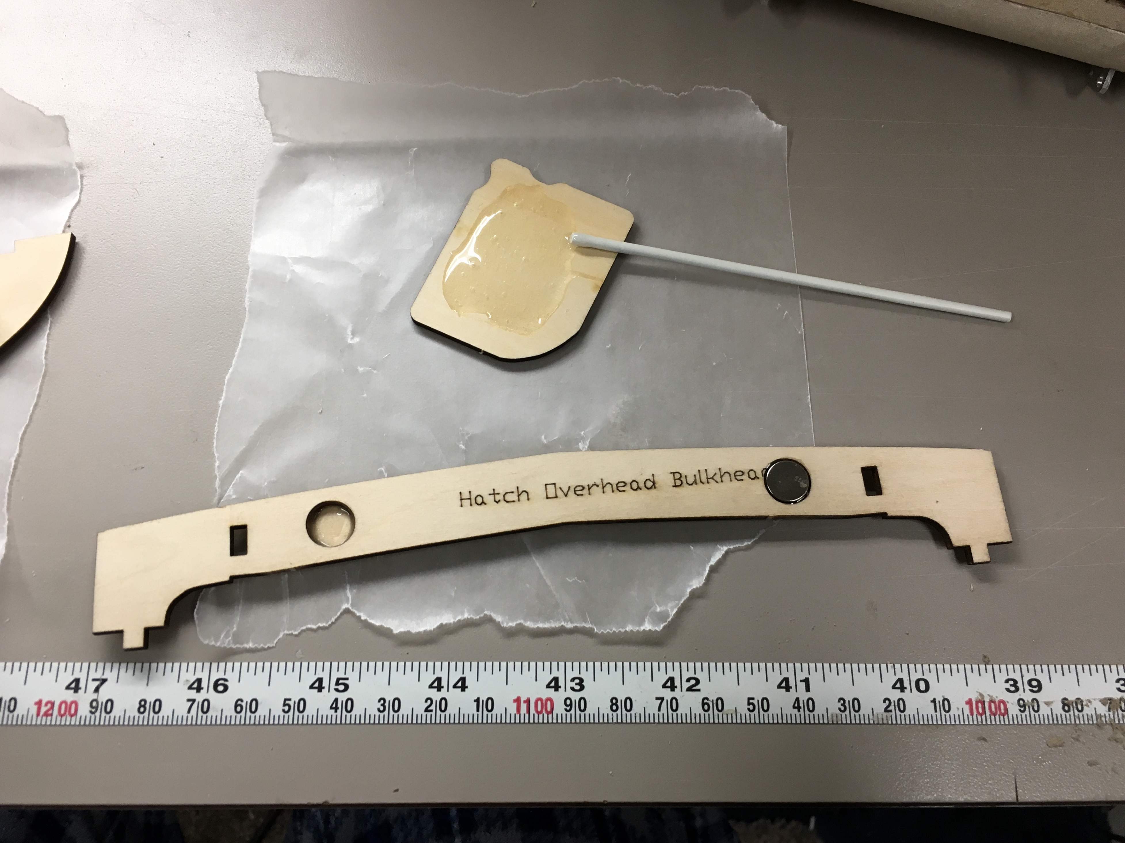 I wetted the sides to allow for a slight radius contour of the bulkhead. Otherwise you’ll surely break the light ply bulkhead.